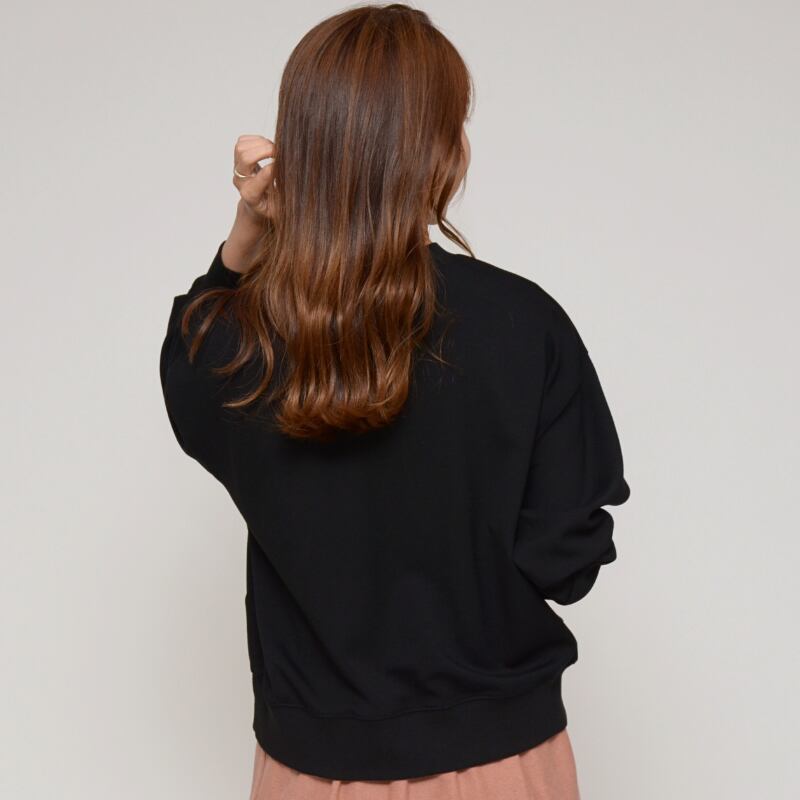 【反転ロゴデザイン】フロッキーロゴ ショート丈トレーナー ‐ LER-2543 ブラック ‐
