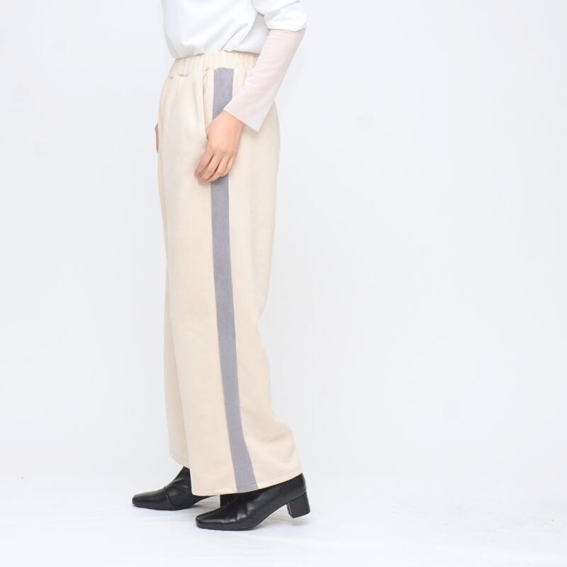 【ストレスフリー+美脚】配色サイドライン セミワイドパンツ ‐ LER-24141 バニラ ‐