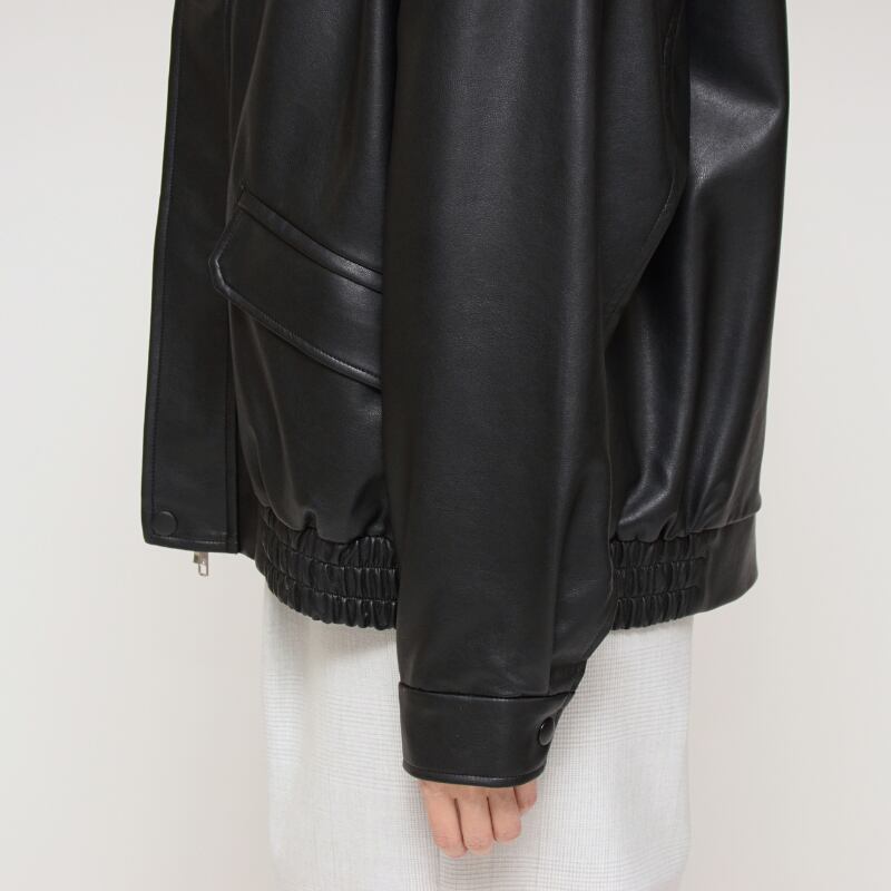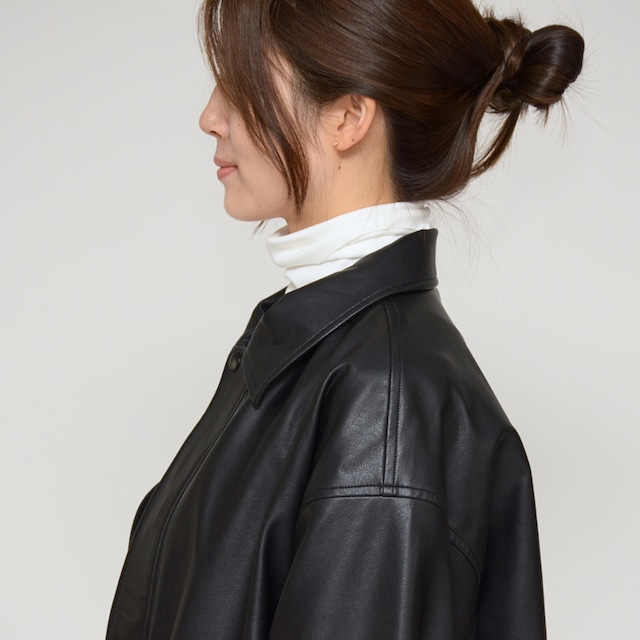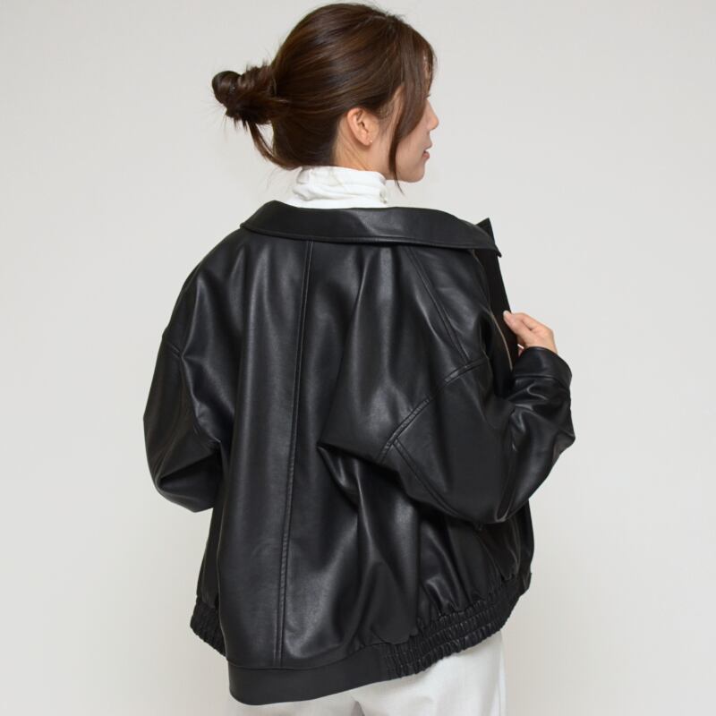 【本革級の質感】オーバーサイズ フェイクレザーブルゾン ‐ LEI-2583 ブラック‐