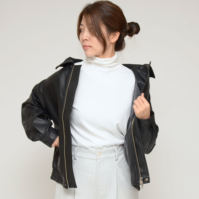 ぐっとこなれた印象になるフェイクレザーブルゾン。