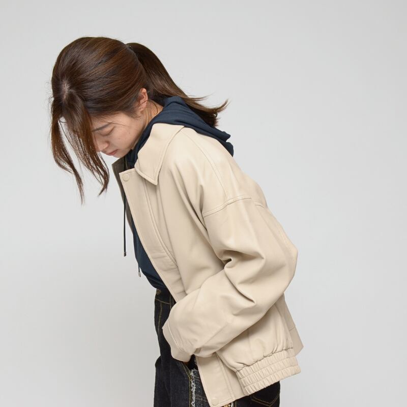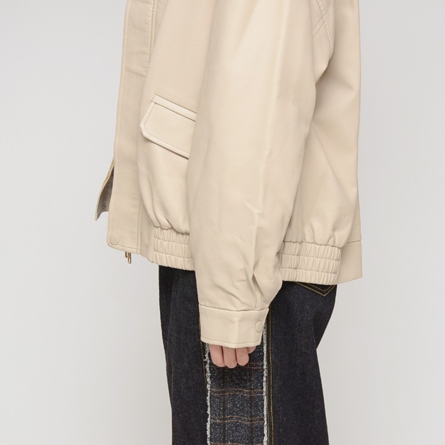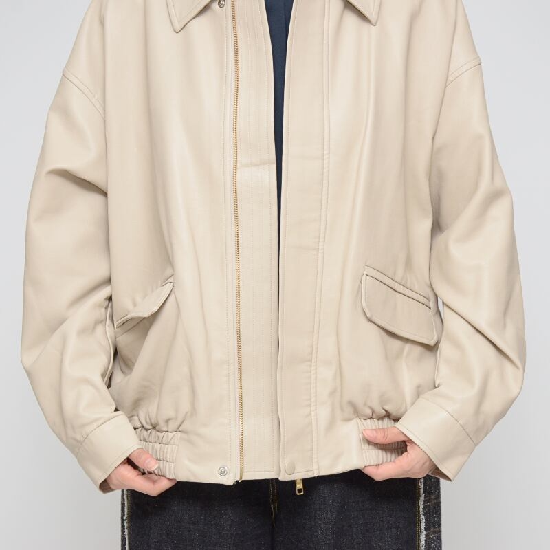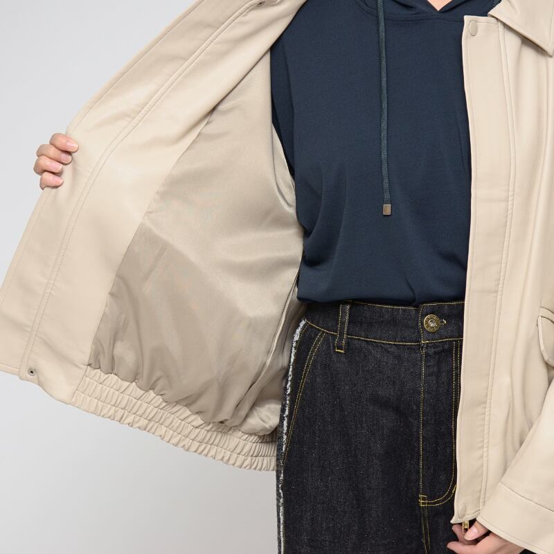 【本革級の質感】オーバーサイズ フェイクレザーブルゾン ‐ LEI-2583 バニラ ‐