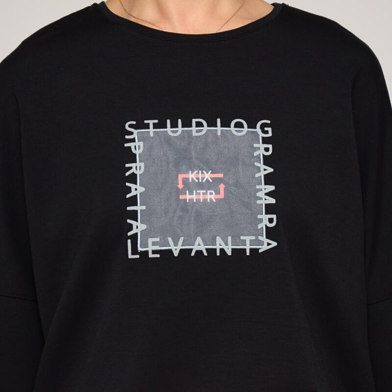 フロッキー、刺繍、オーガンジー、顔料プリントを組み合わせた、贅沢な異素材ミックスロゴ。