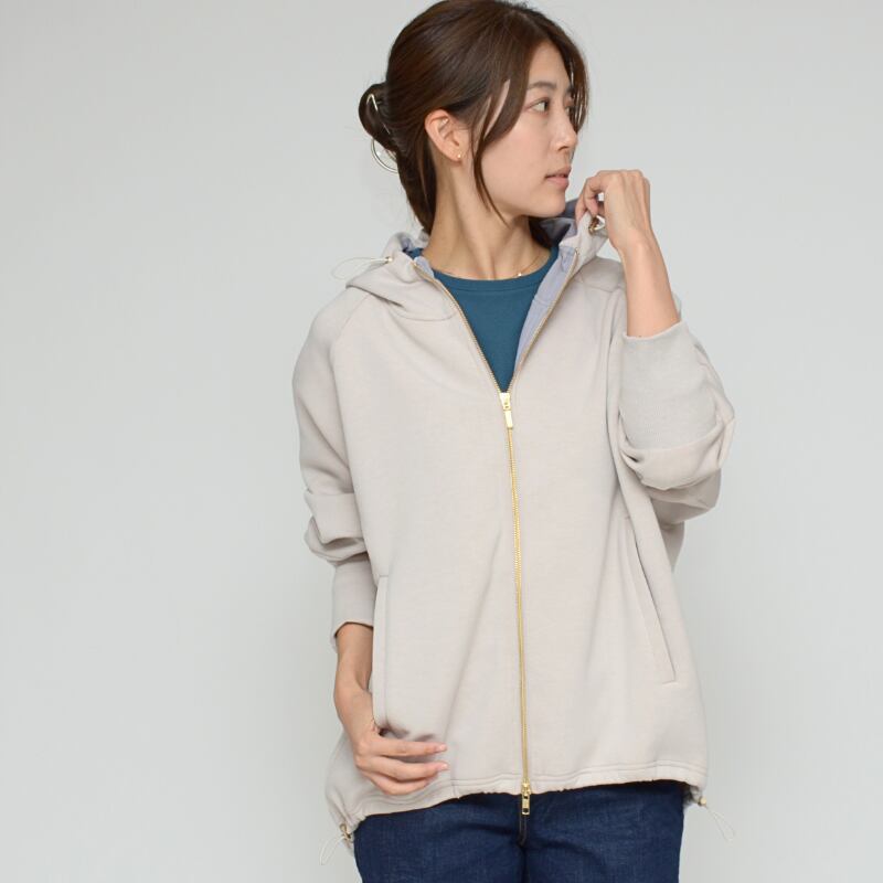 フードは立体感を調整でき、裾は絞ることでシルエットの変化を楽しめます。