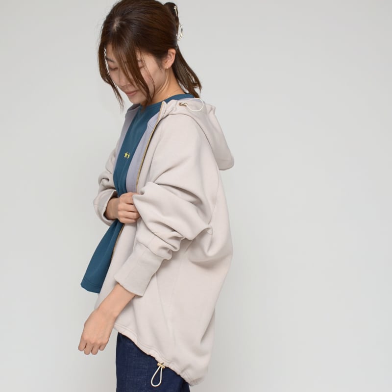 フードと裾にはドロストデザインを採用。