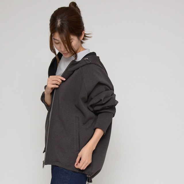 【ふんわりシルエット】カットワーク ダブルフェイスブルゾン ‐ LEI-2563 チャコール ‐