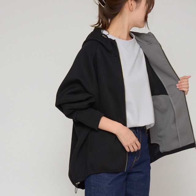 【ふんわりシルエット】カットワーク ダブルフェイスブルゾン ‐ LEI-2563 ブラック ‐