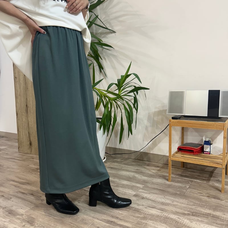 【日本製生地使用】細見えタイト リブカットスカート ‐ LEF-25125 スモーキーグリーン ‐