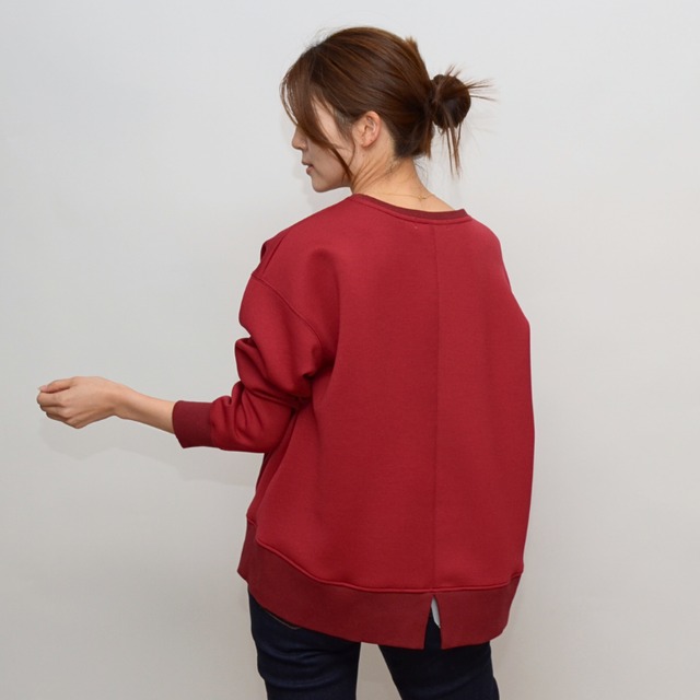 【Praiaらしい大人カジュアル】もちもちダブルフェイスロゴトップス ‐ LEO-25112 ワイン ‐