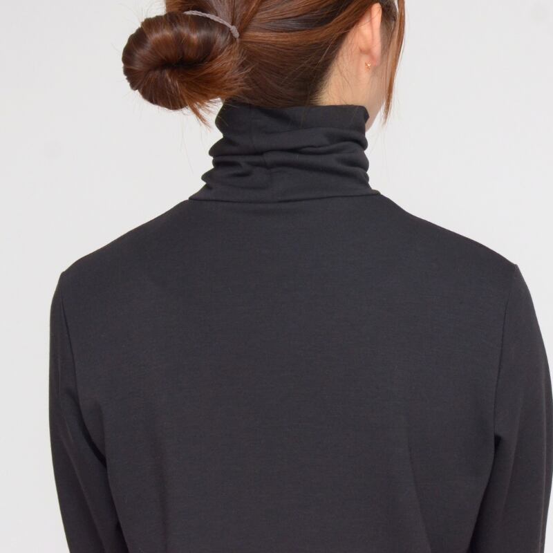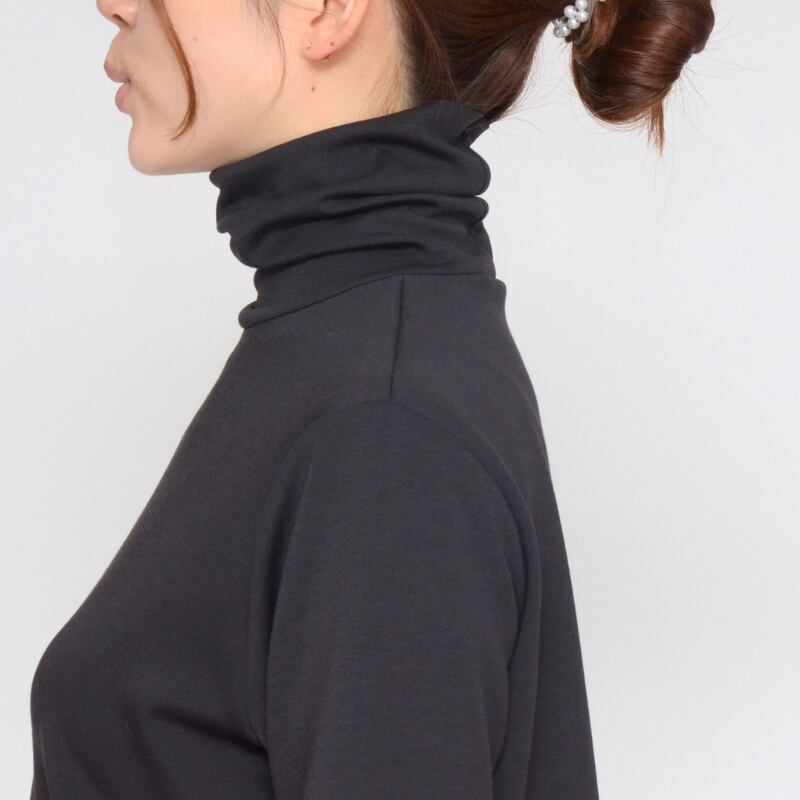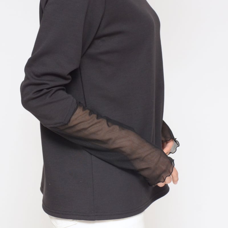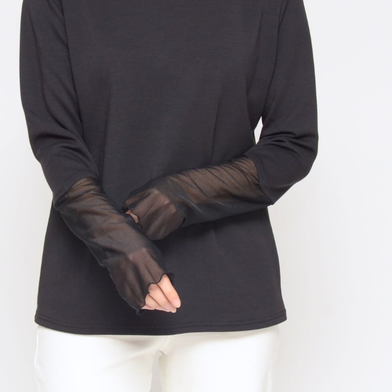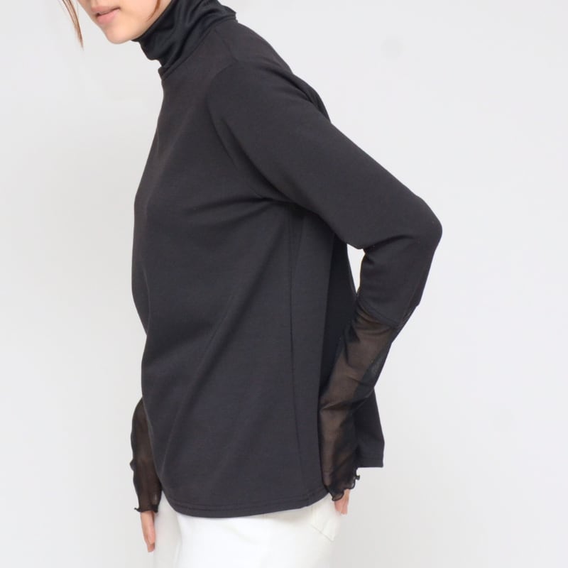【コーデ格上げアイテム】袖チュールハイネックカットソー - LER-2528 ブラック -