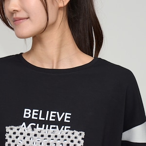 【大人ロゴ】かぎ針レース さらさら素材トップス ‐ LEO-21100B ブラック ‐