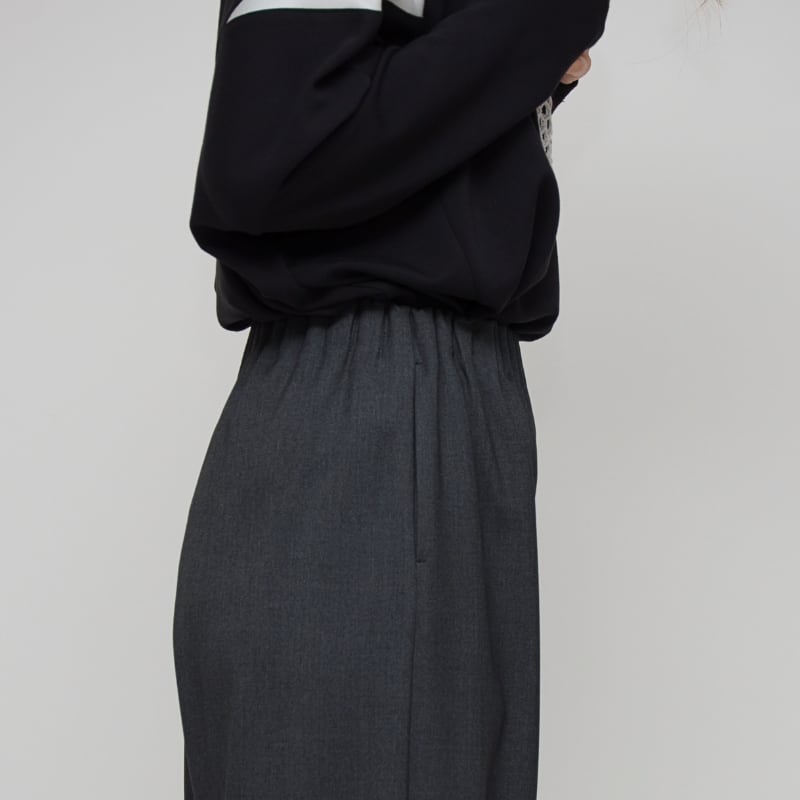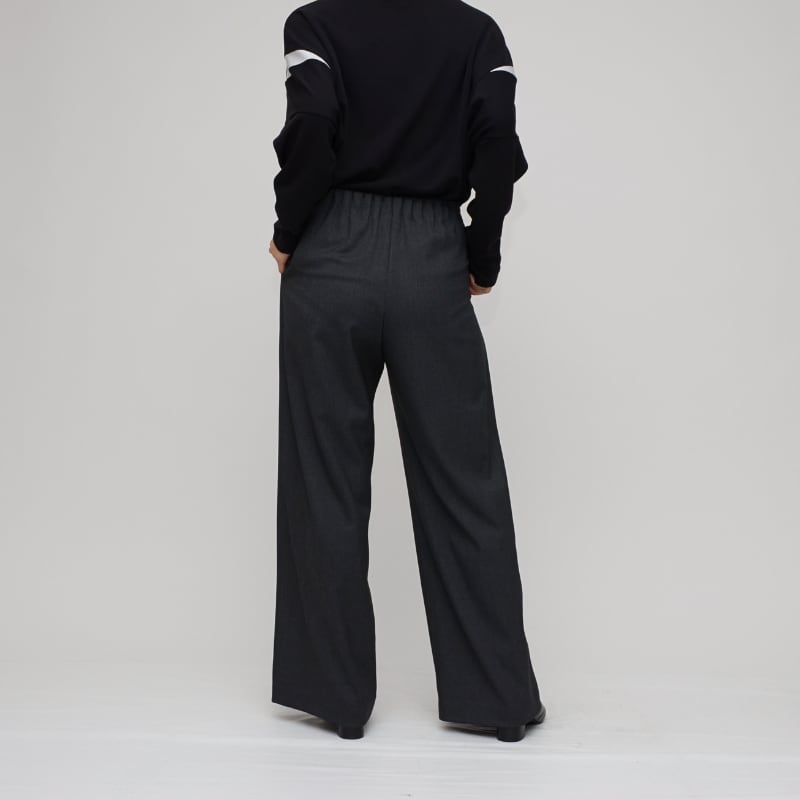 【美シルエット】年中使える ウエスト総ギャザーパンツ ‐ LEQ-25126 チャコール ‐