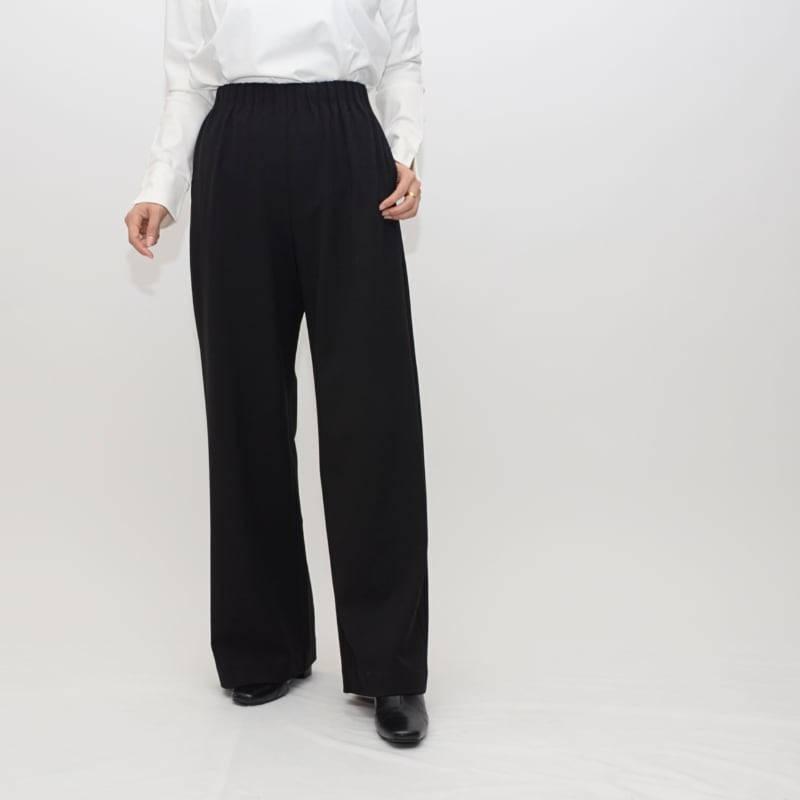 【美シルエット】年中使える ウエスト総ギャザーパンツ ‐ LEQ-25126 ブラック ‐