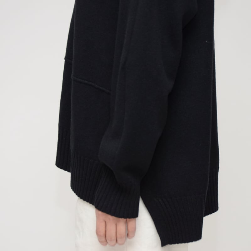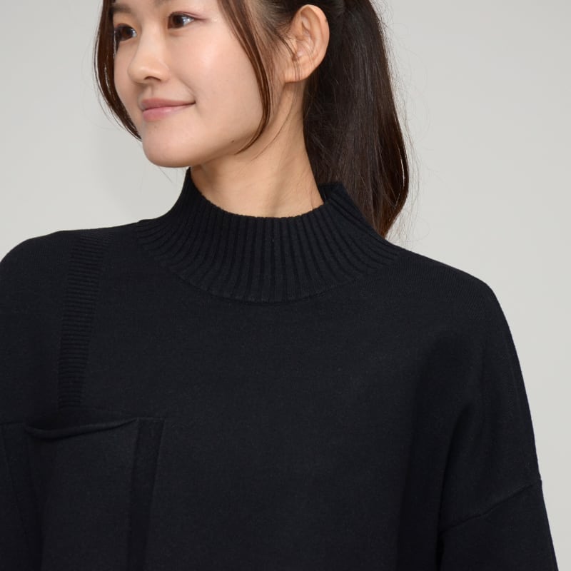 締め付け感のないゆったりとしたリブハイネックデザイン。