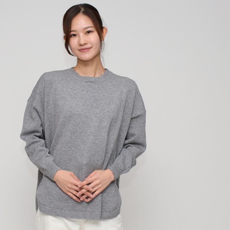 【ふわモチ素材】 着回し抜群ラウンドネックトップス ‐ LEVK-25446 グレー ‐