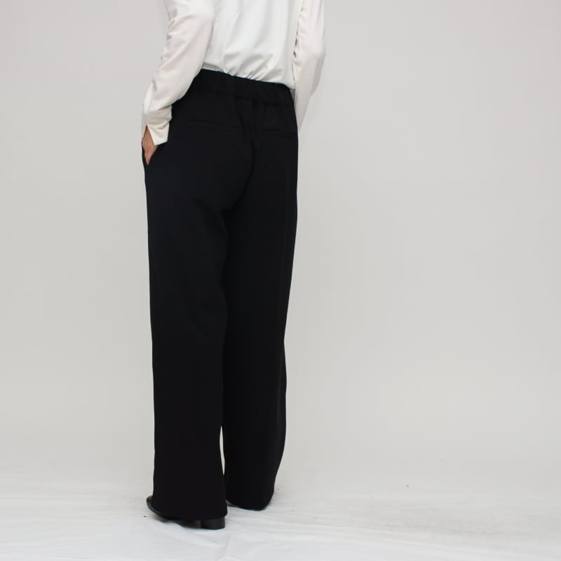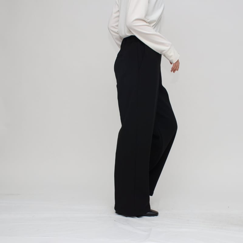 【パーフェクトパンツ】梨地×裏起毛 美脚セミワイドパンツ - LER-25129 ブラック ‐