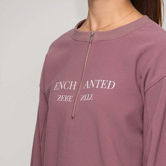 【激おススメ!】梨地裏起毛 ハーフジップパフスリーブトップス ‐ LER-25128 スモーキーピンク‐