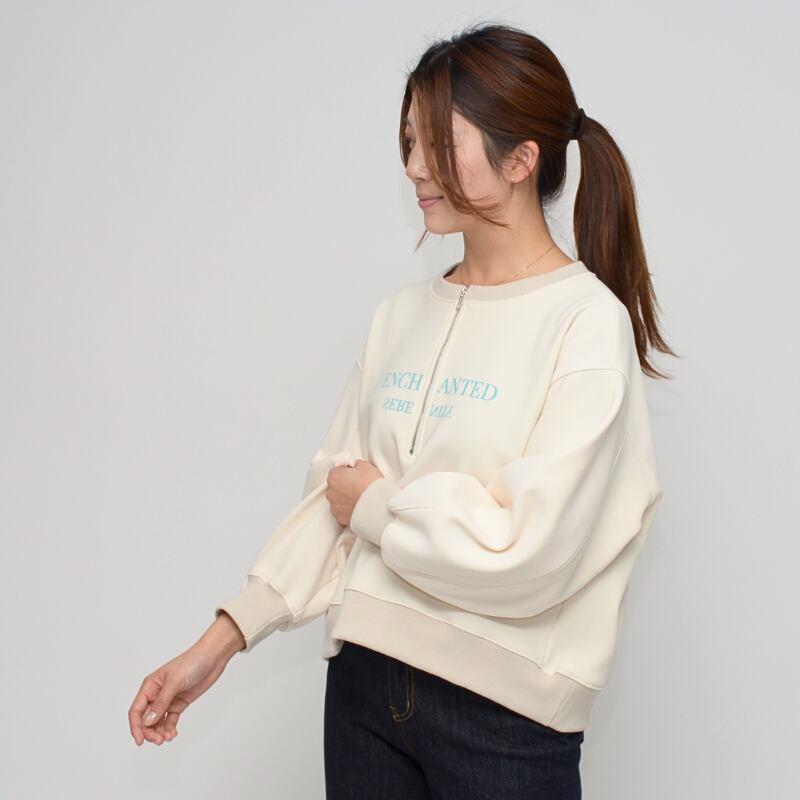 ・トレンドのハーフジップとパフスリーブを取り入れたい方。