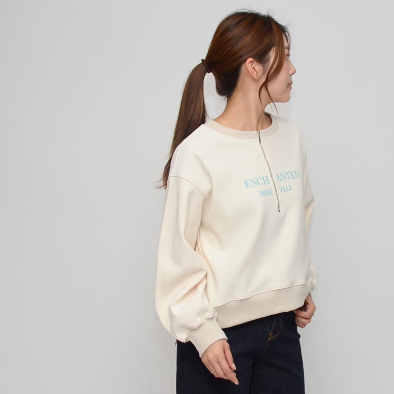 トレンドのハーフジップデザインが、顔周りに抜け感とアクセントをプラスします。