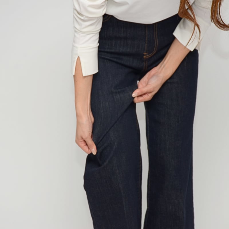 驚異的な伸縮性で、デニム特有の硬さがなく、ストレスフリーな穿き心地です。