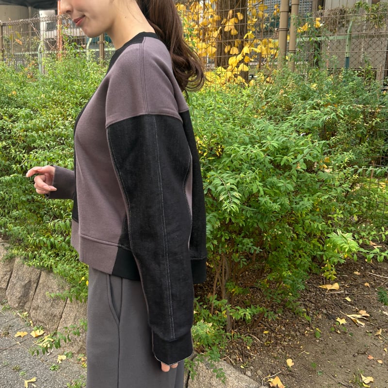 袖裏起毛デニム切替えデザイン: