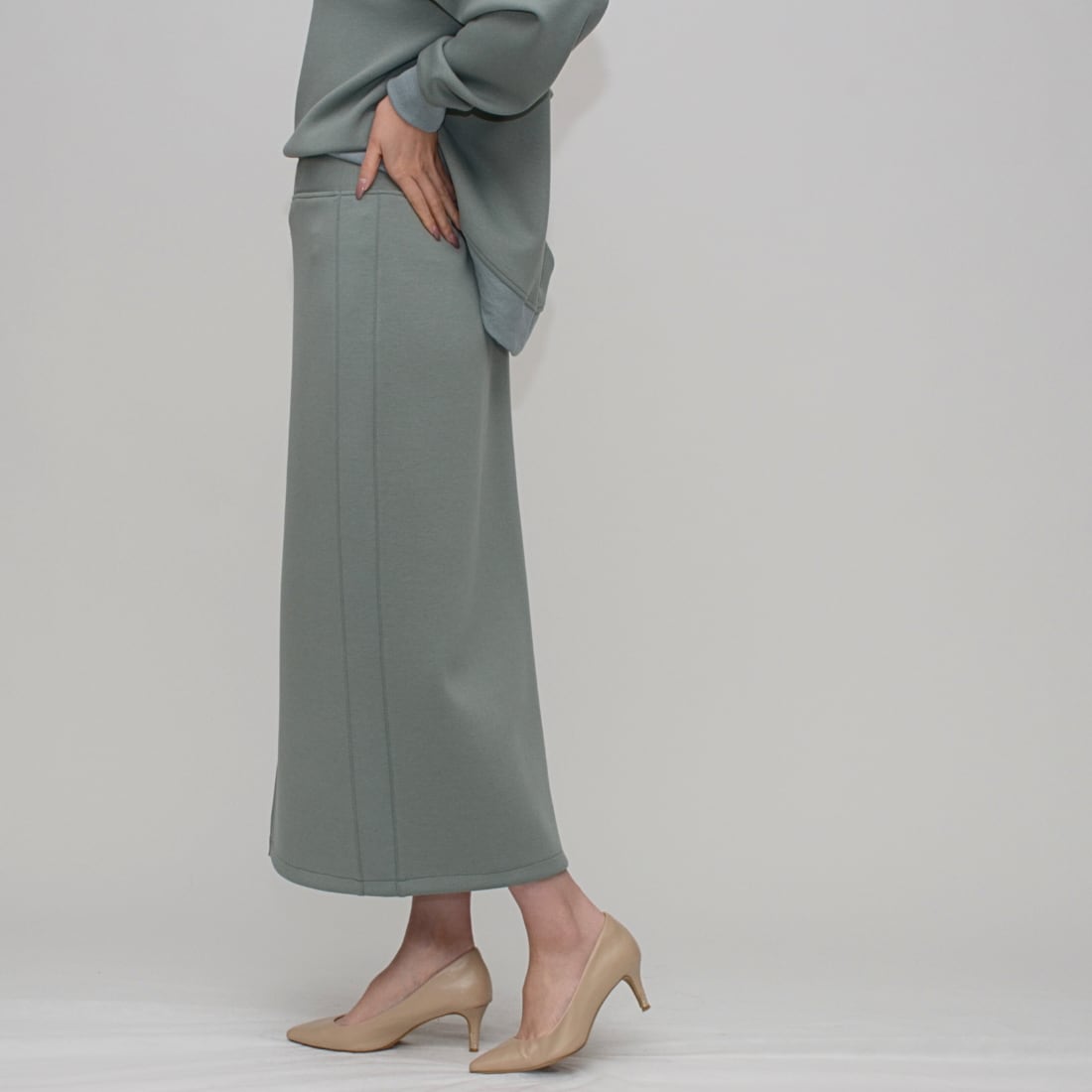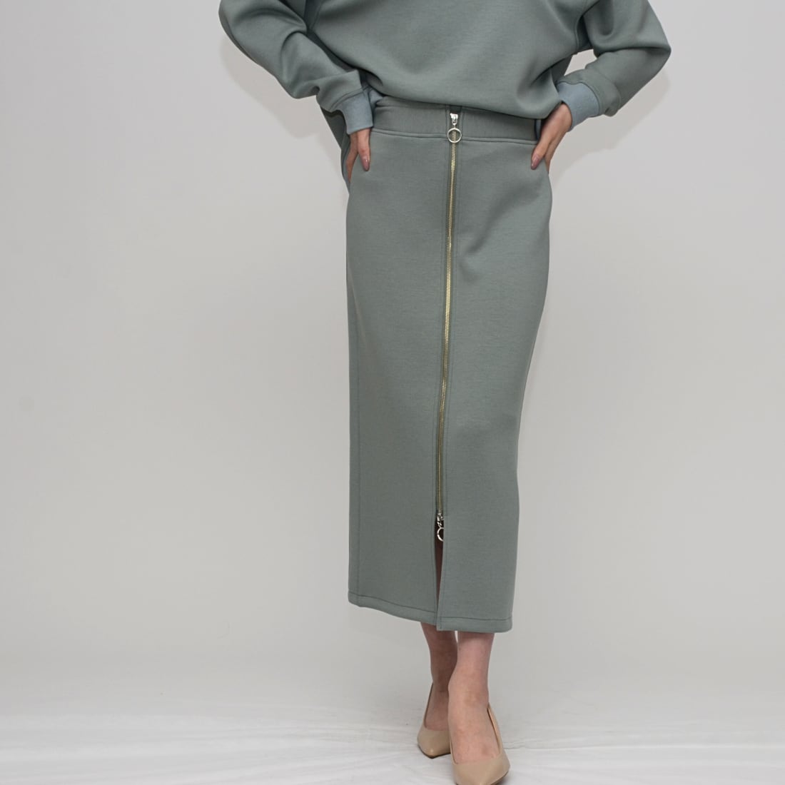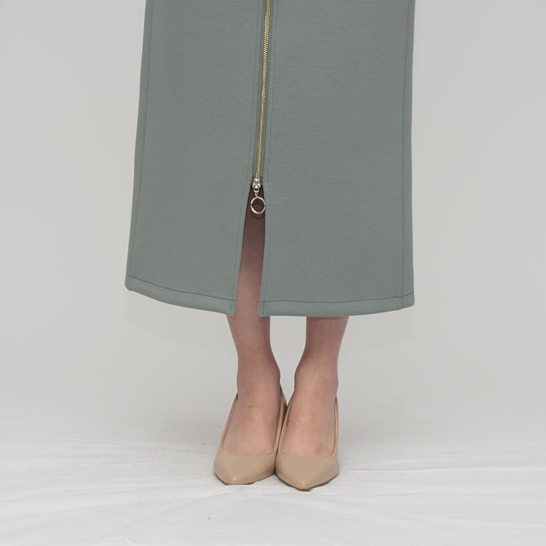 【究極のはき心地】ダブルフェイス・リングファスナー Iラインスカート - LEI-2592B ミント -