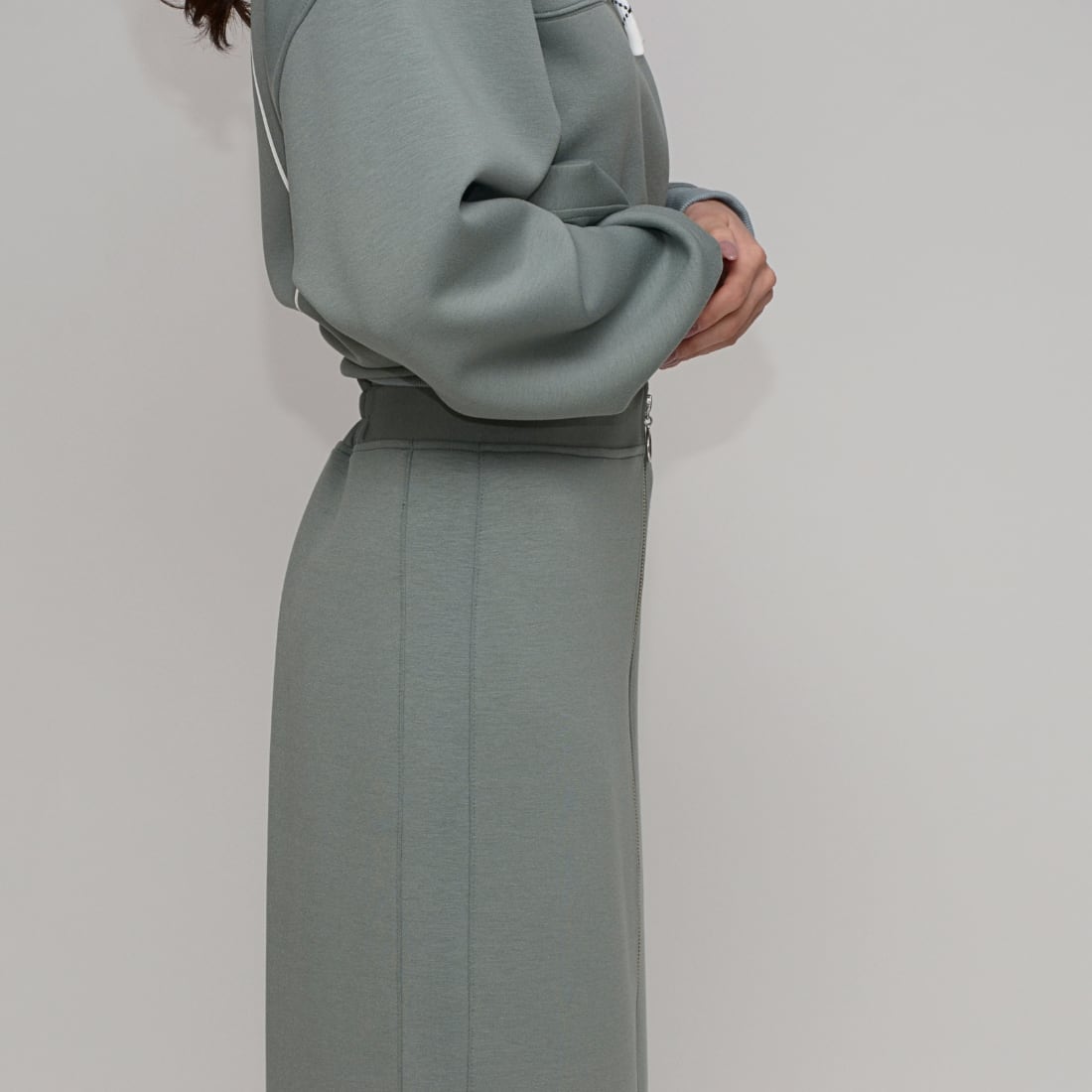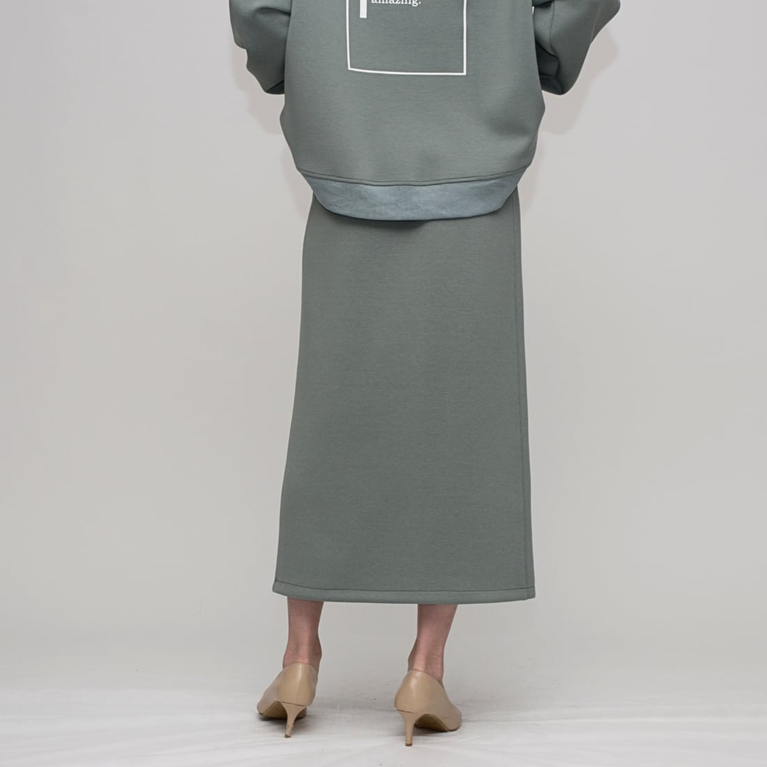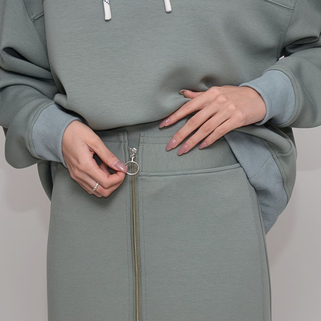 【究極のはき心地】ダブルフェイス・リングファスナー Iラインスカート - LEI-2592B ミント -