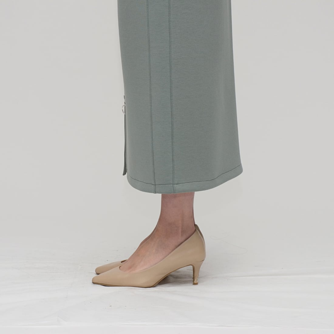 足元に抜け感を作りつつ、上品な歩き姿を演出するスリットデザインを採用。