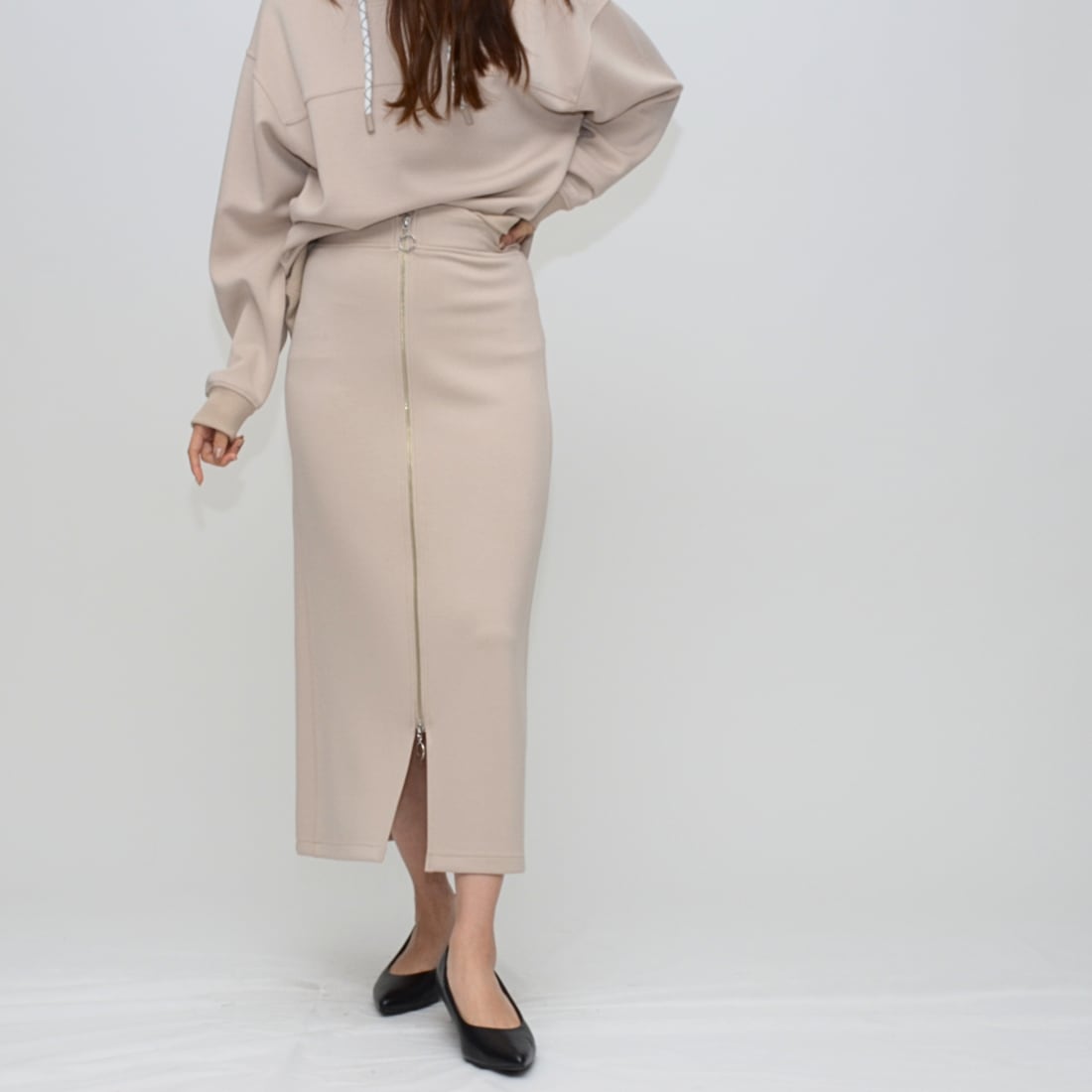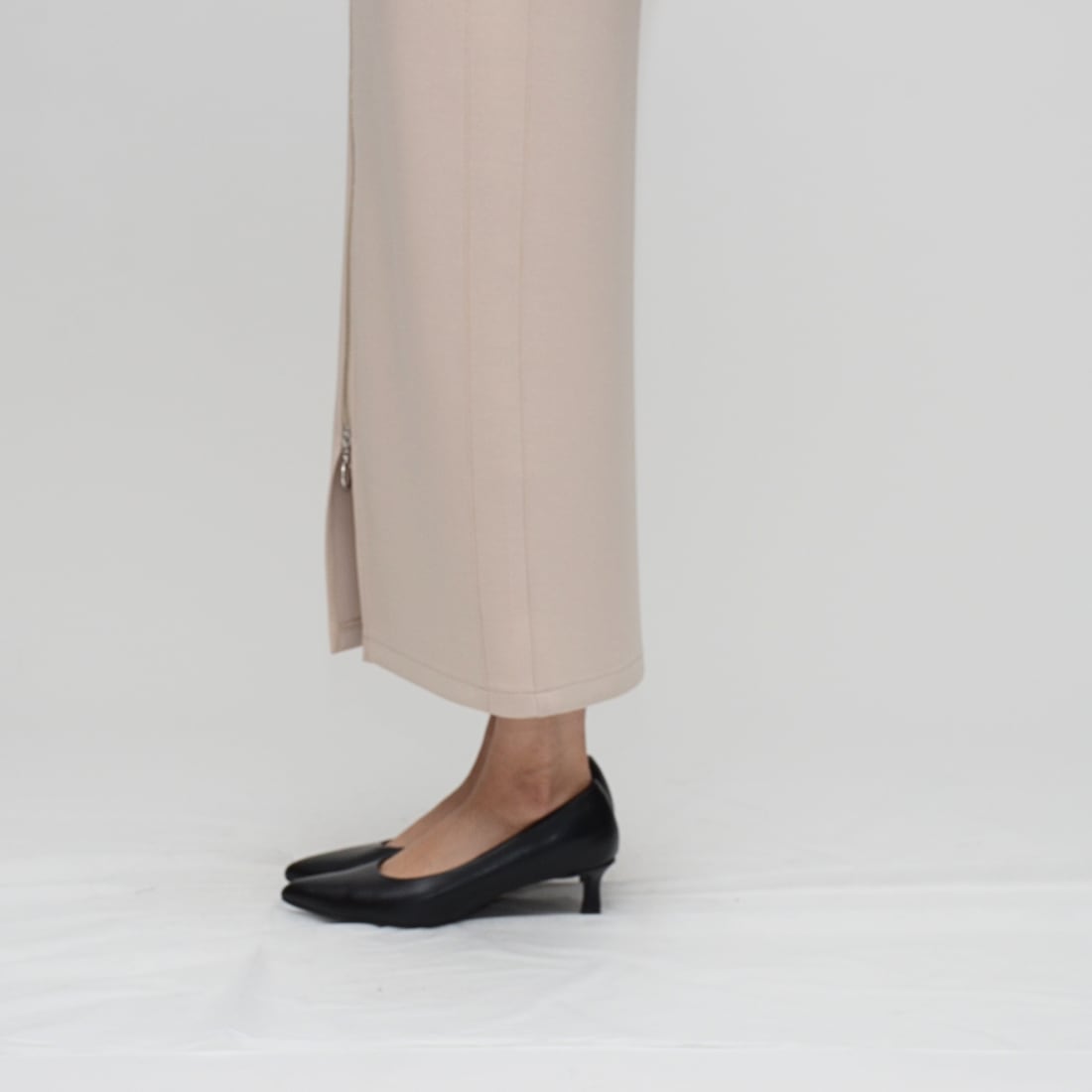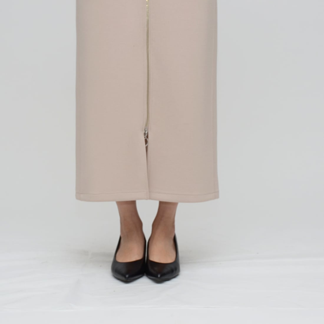 【究極のはき心地】ダブルフェイス・リングファスナー Iラインスカート - LEI-2592B グレージュ -