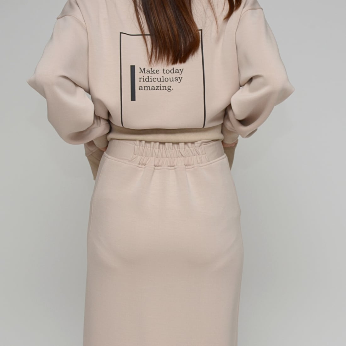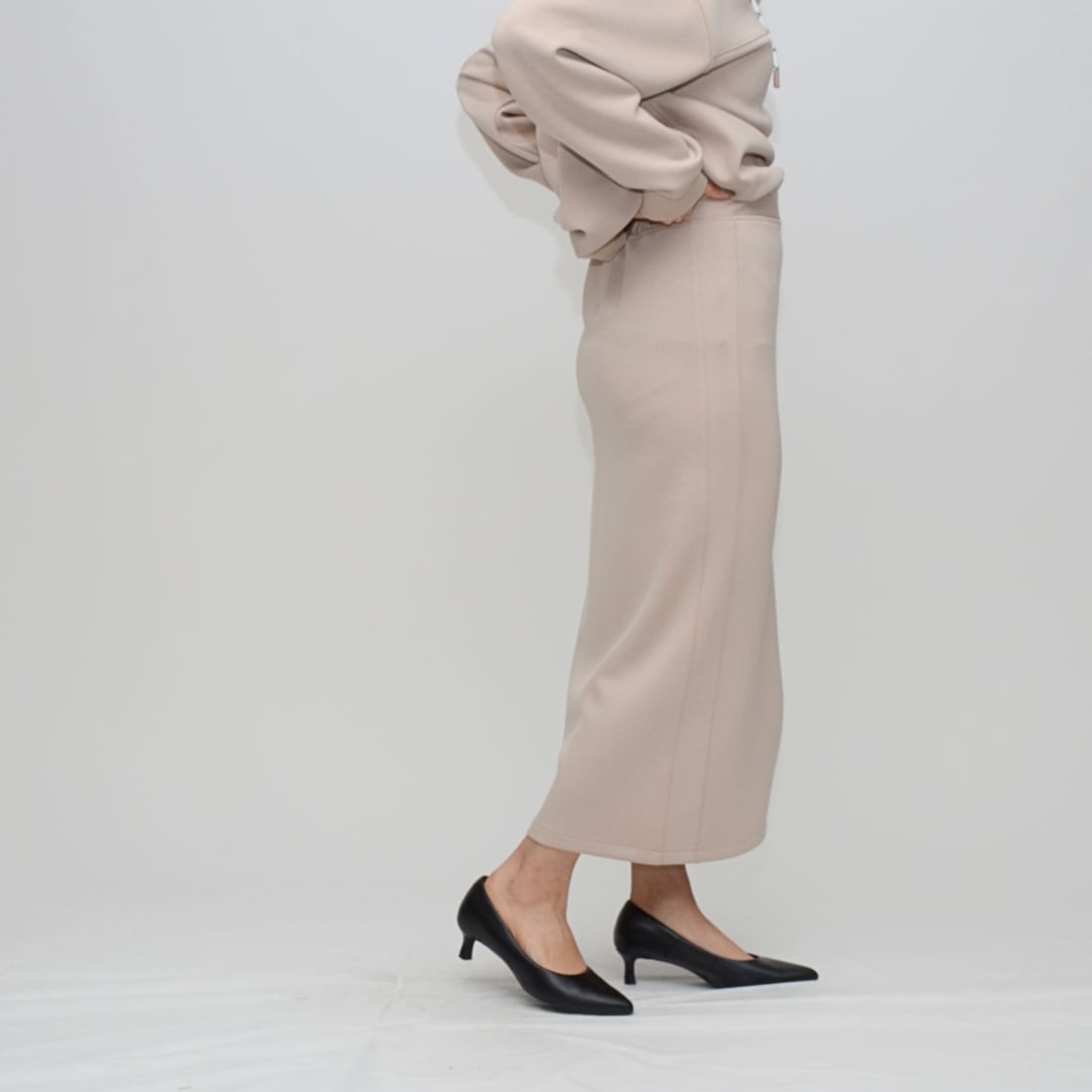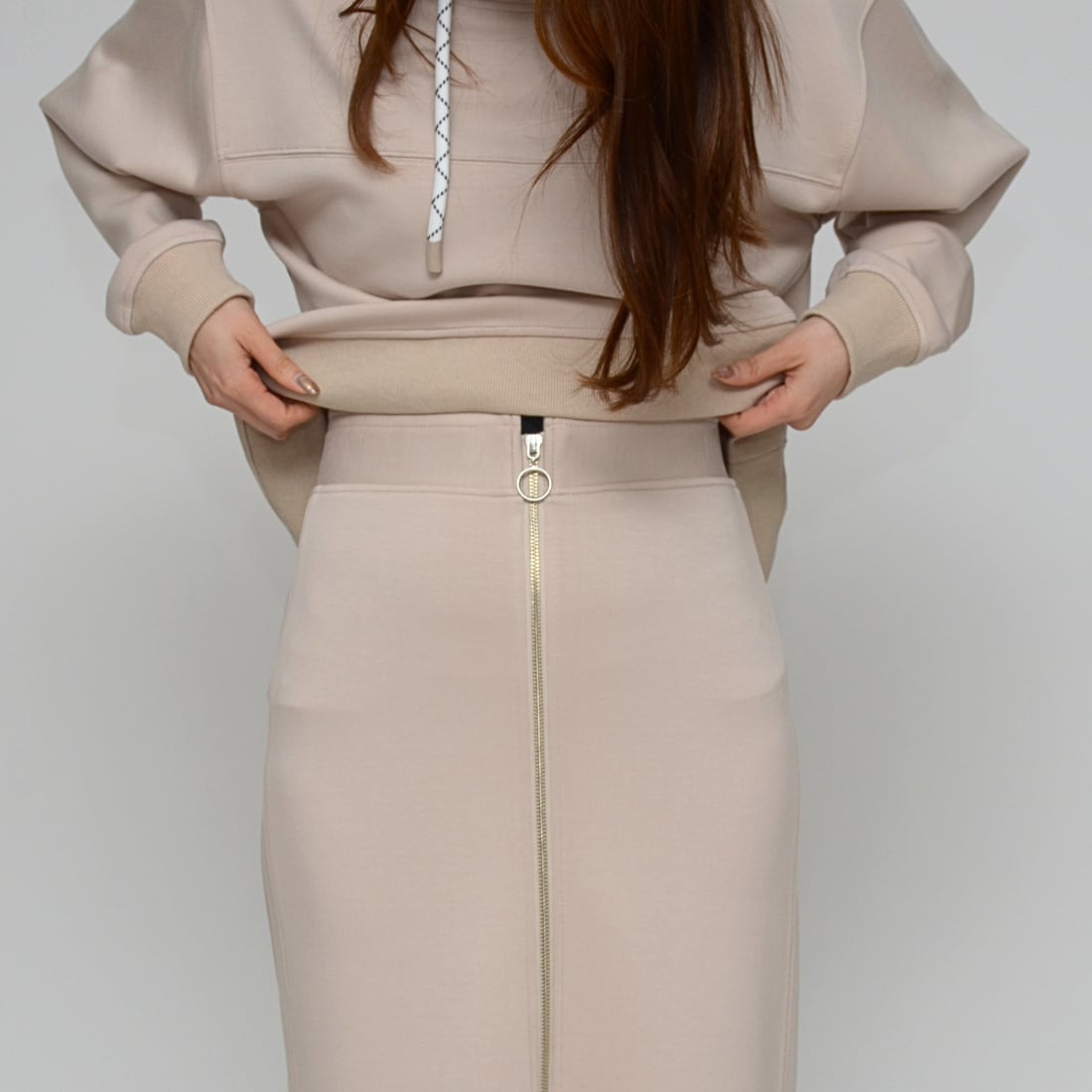 【究極のはき心地】ダブルフェイス・リングファスナー Iラインスカート - LEI-2592B グレージュ -