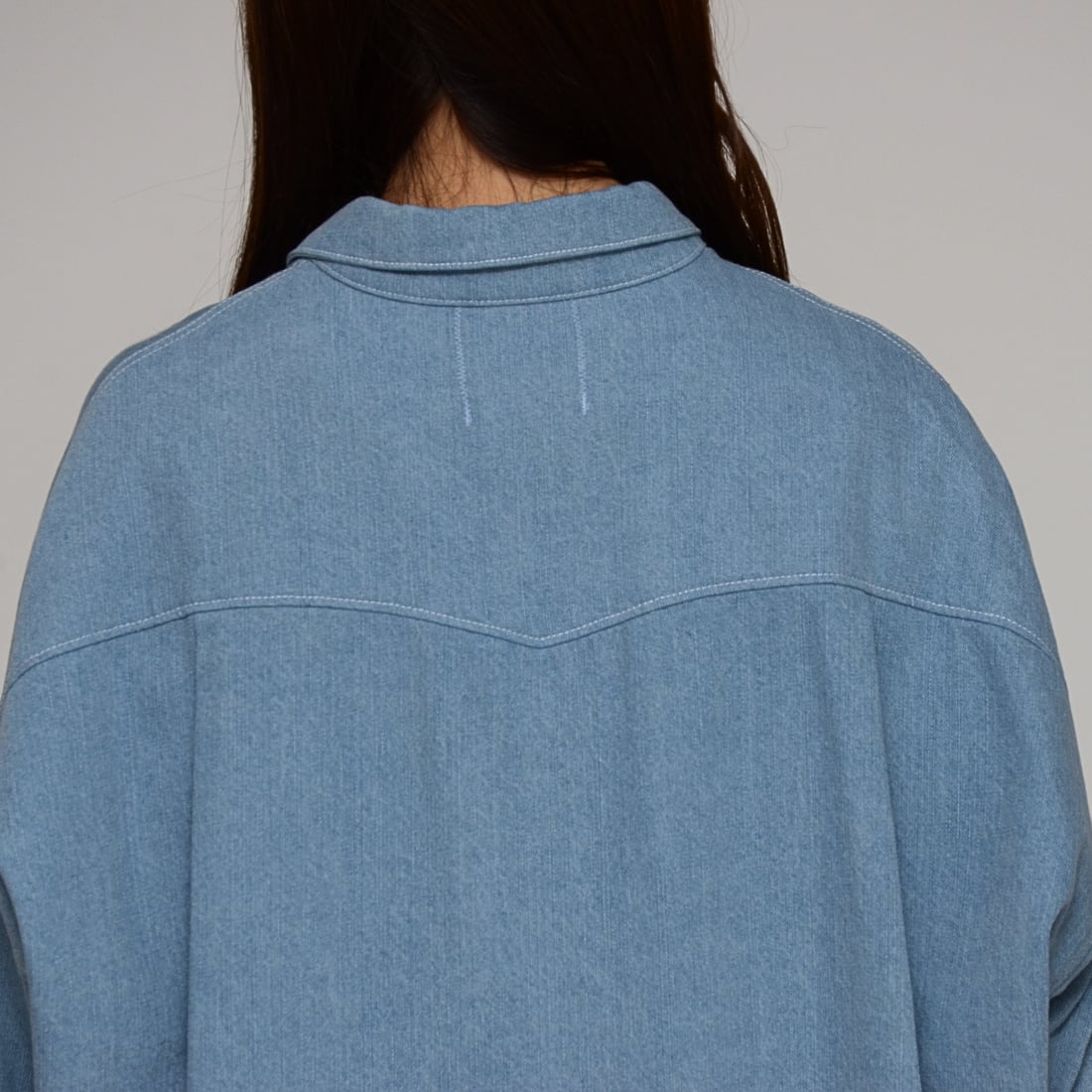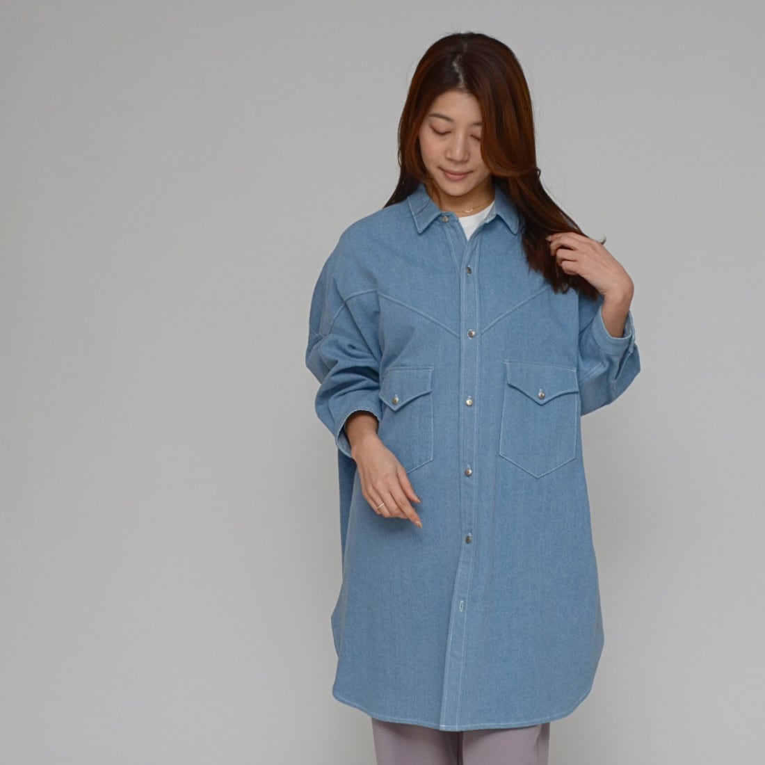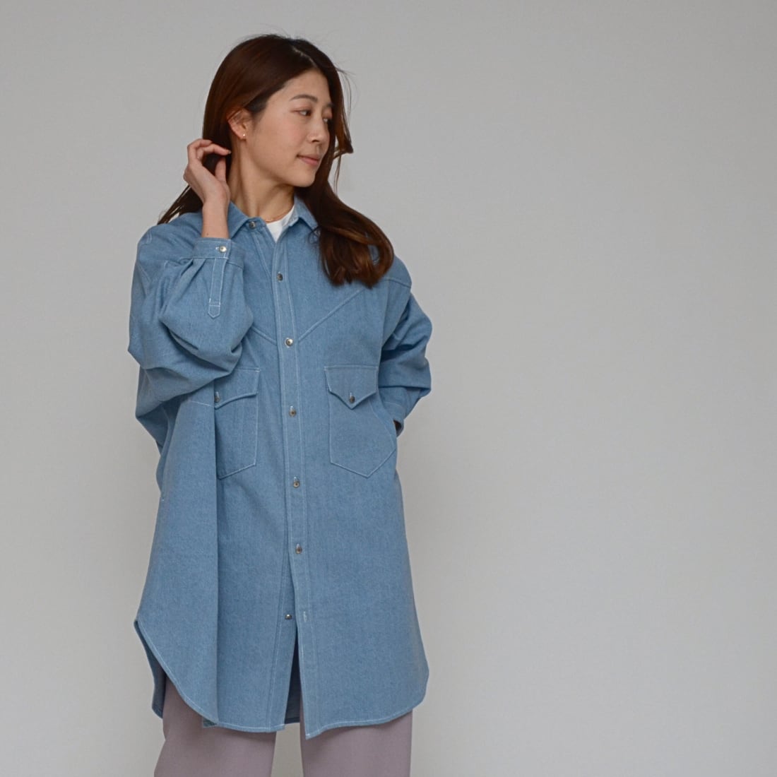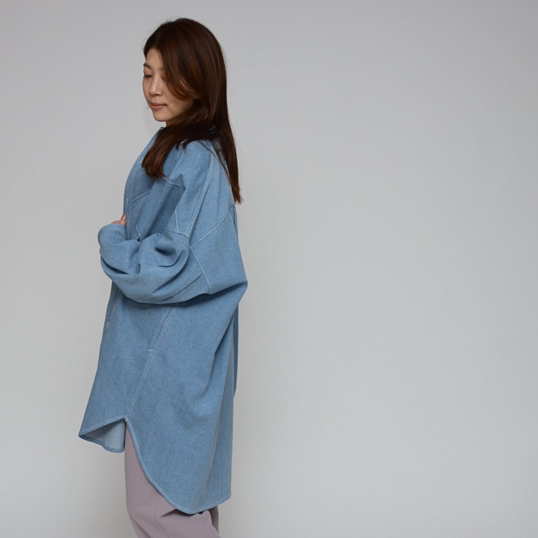 【春先の羽織に】ワンウォッシュ・ライトオンスデニムロングシャツ ‐ LEI-2598 ライトブルー‐