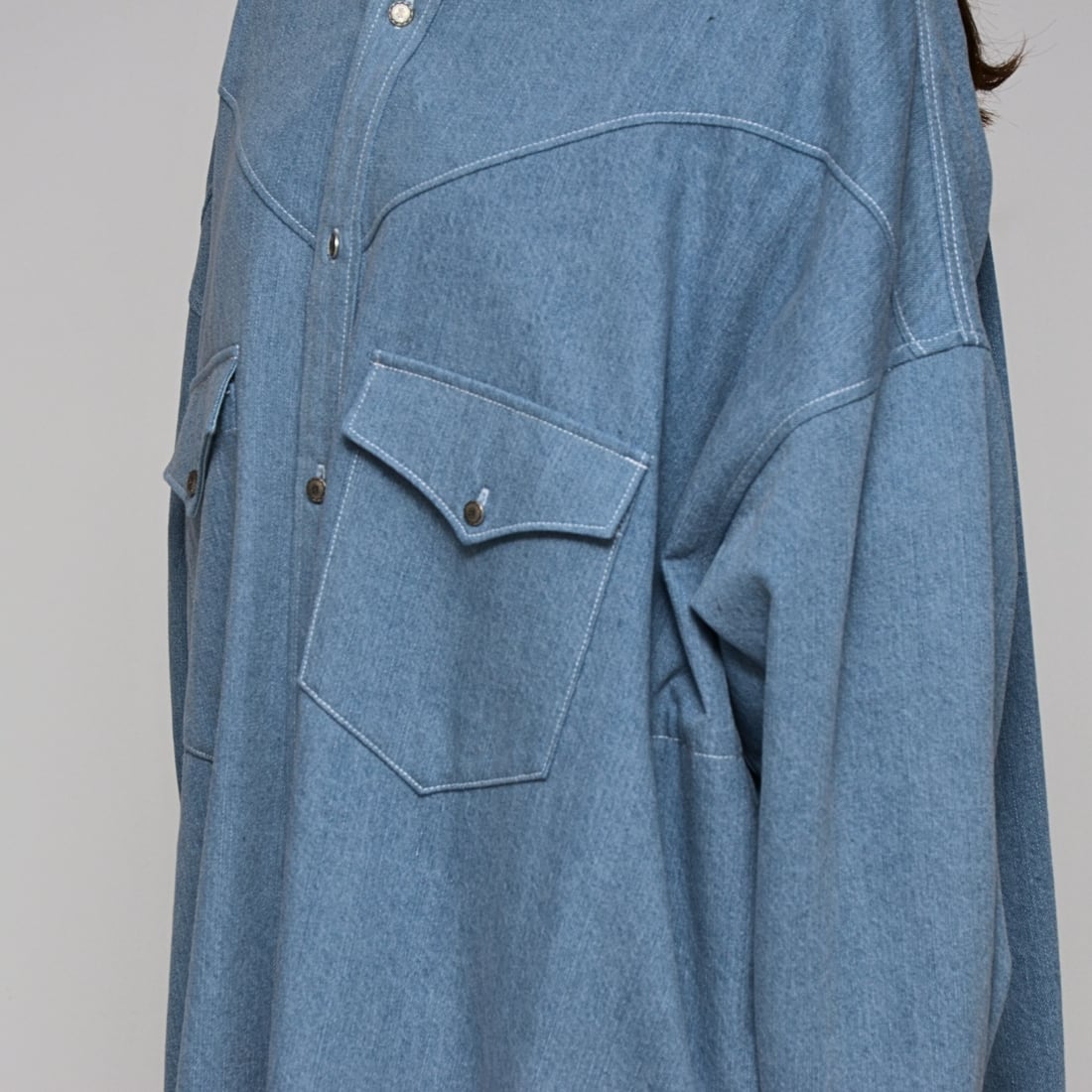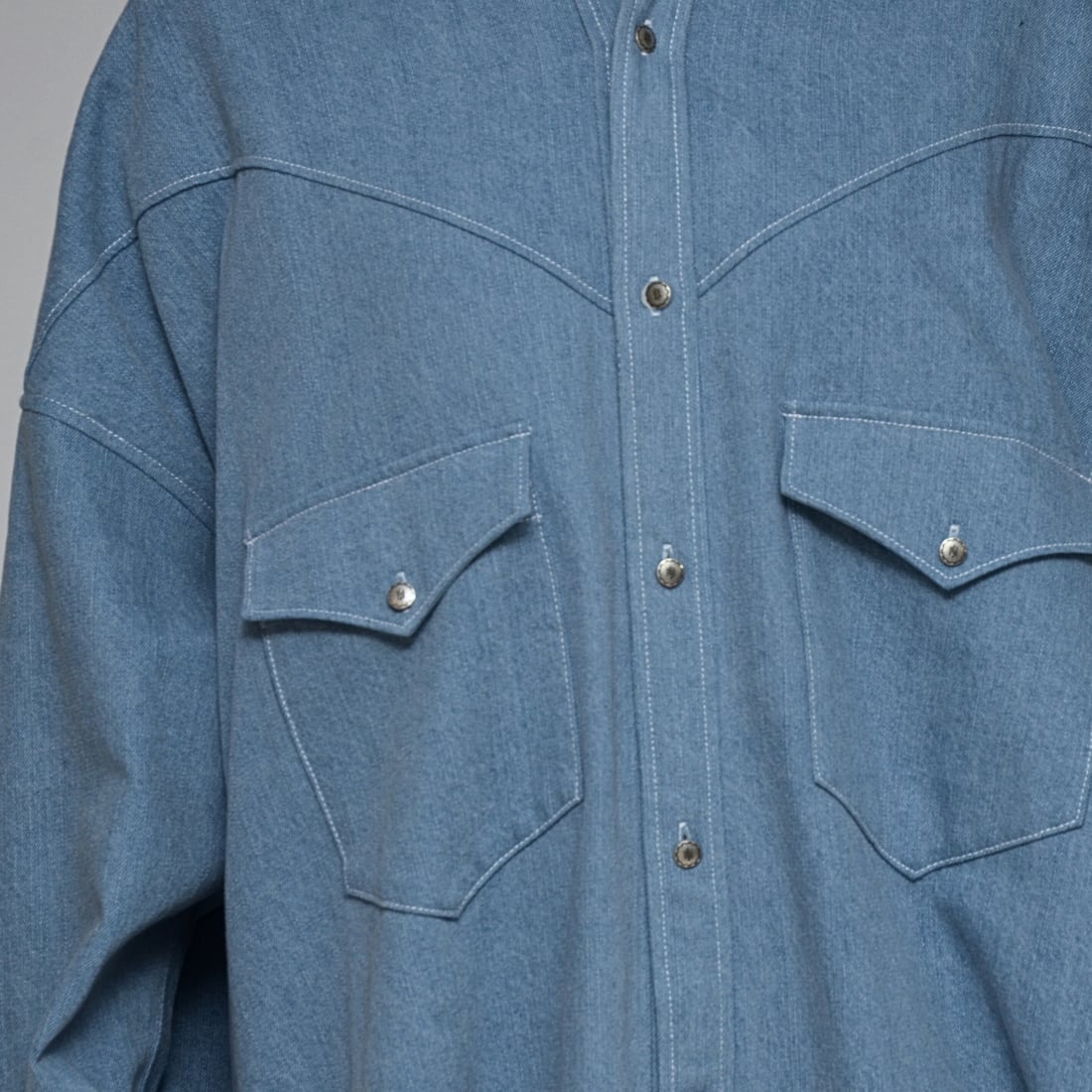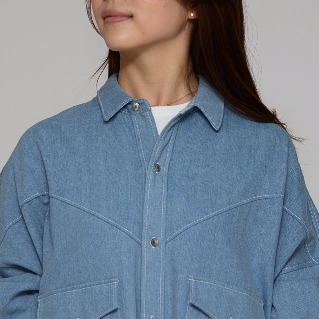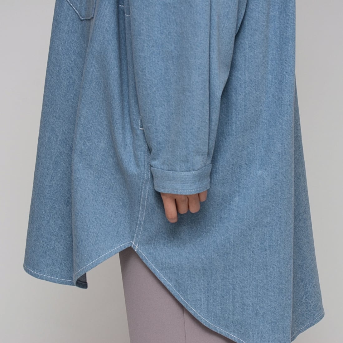 【春先の羽織に】ワンウォッシュ・ライトオンスデニムロングシャツ ‐ LEI-2598 ライトブルー‐