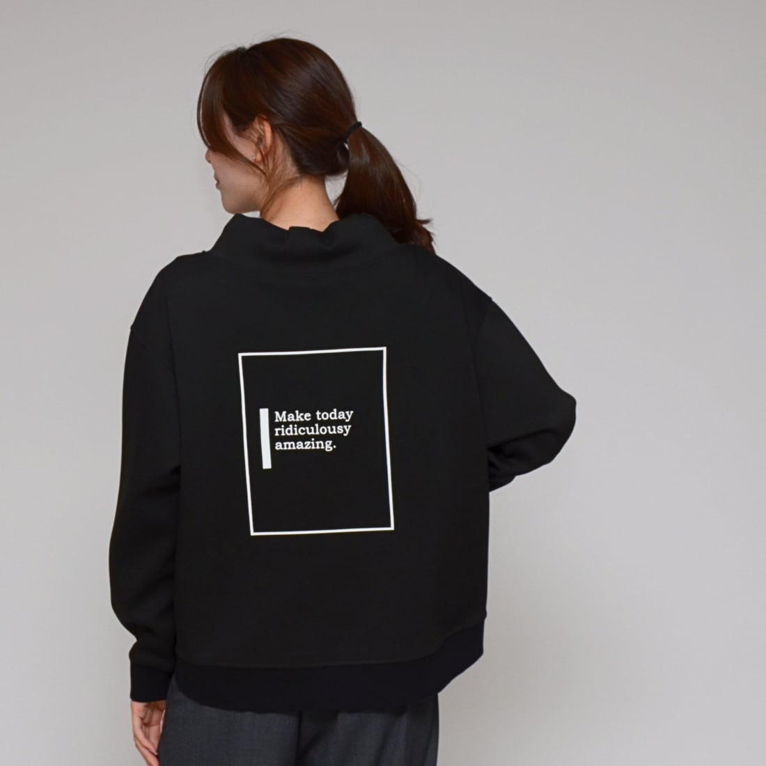 背面に施されたボックスロゴが、モードで洗練された印象を演出。カジュアルすぎない大人のデザイン。