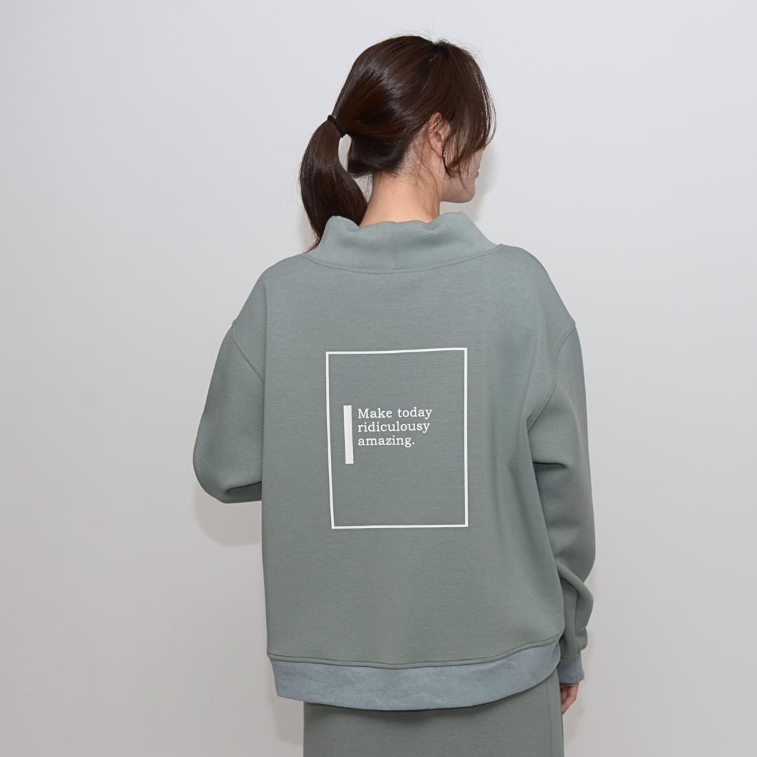 【小顔効果】フェイクパーカー・レタリングプルオーバー - LEI-25137 ミント ‐