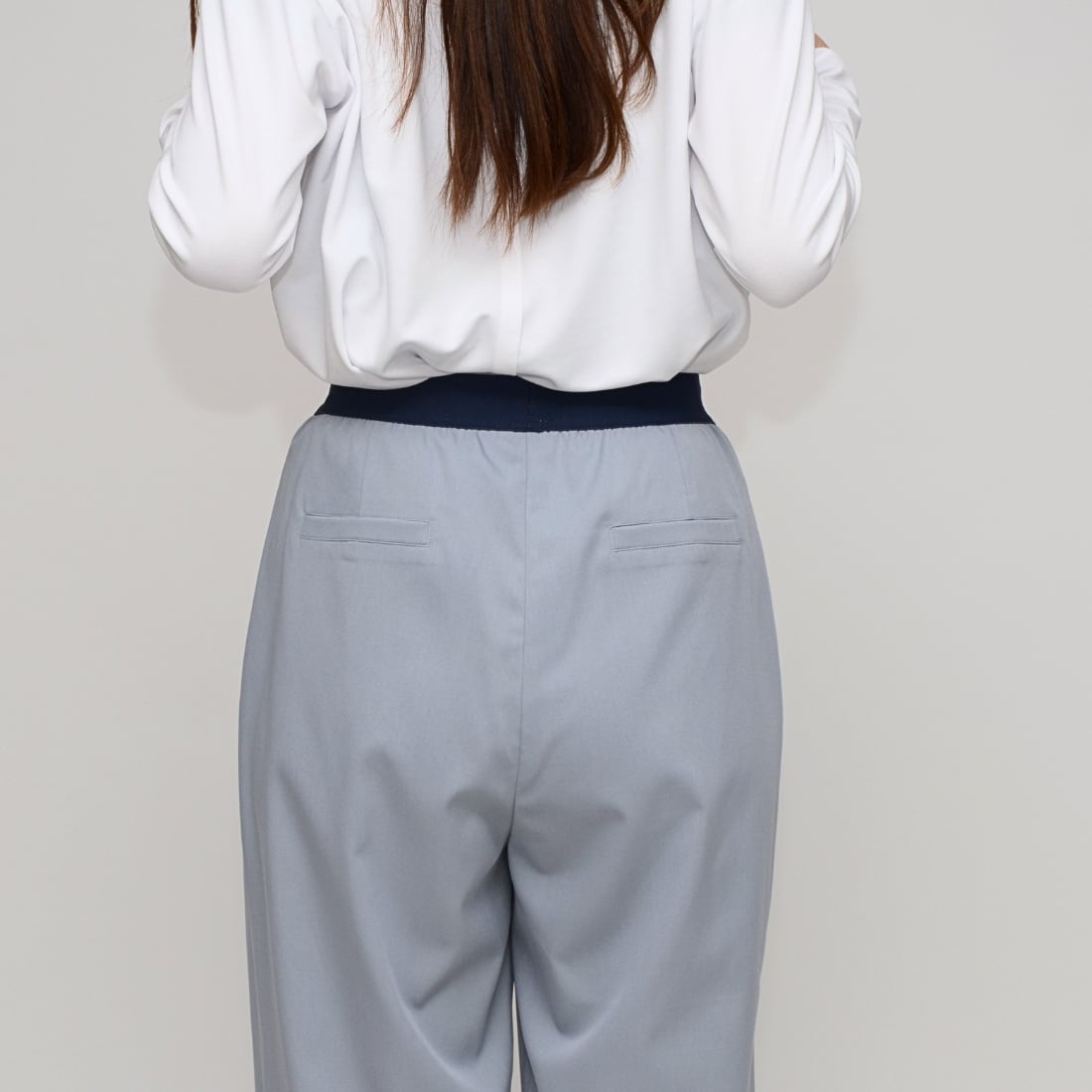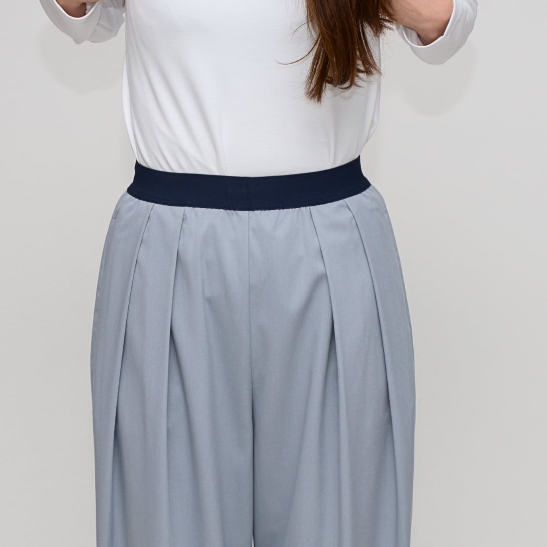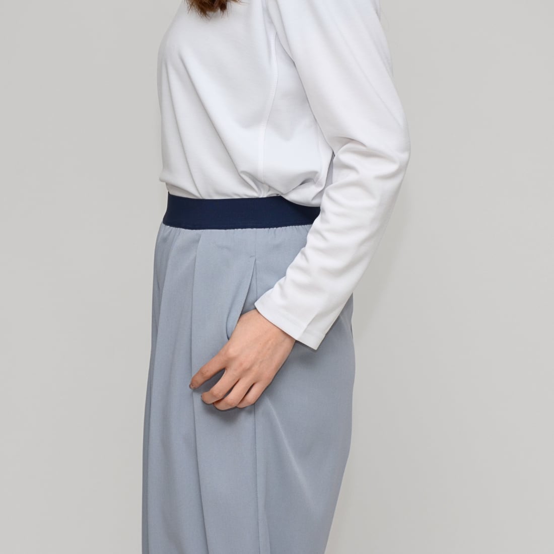 インタックの立体感とウエストゴムの解放感で創る、洗練コクーンシルエット」