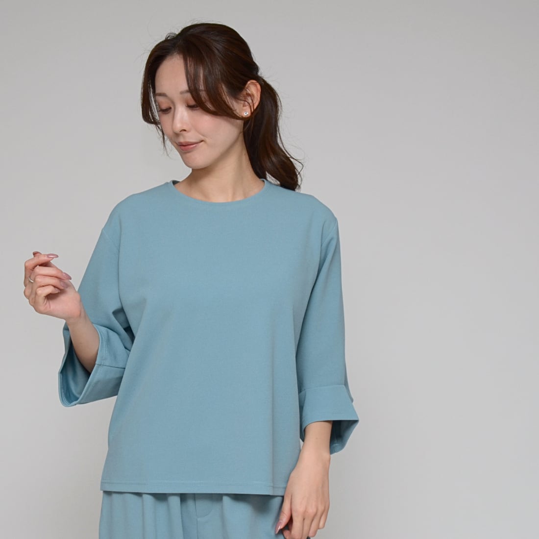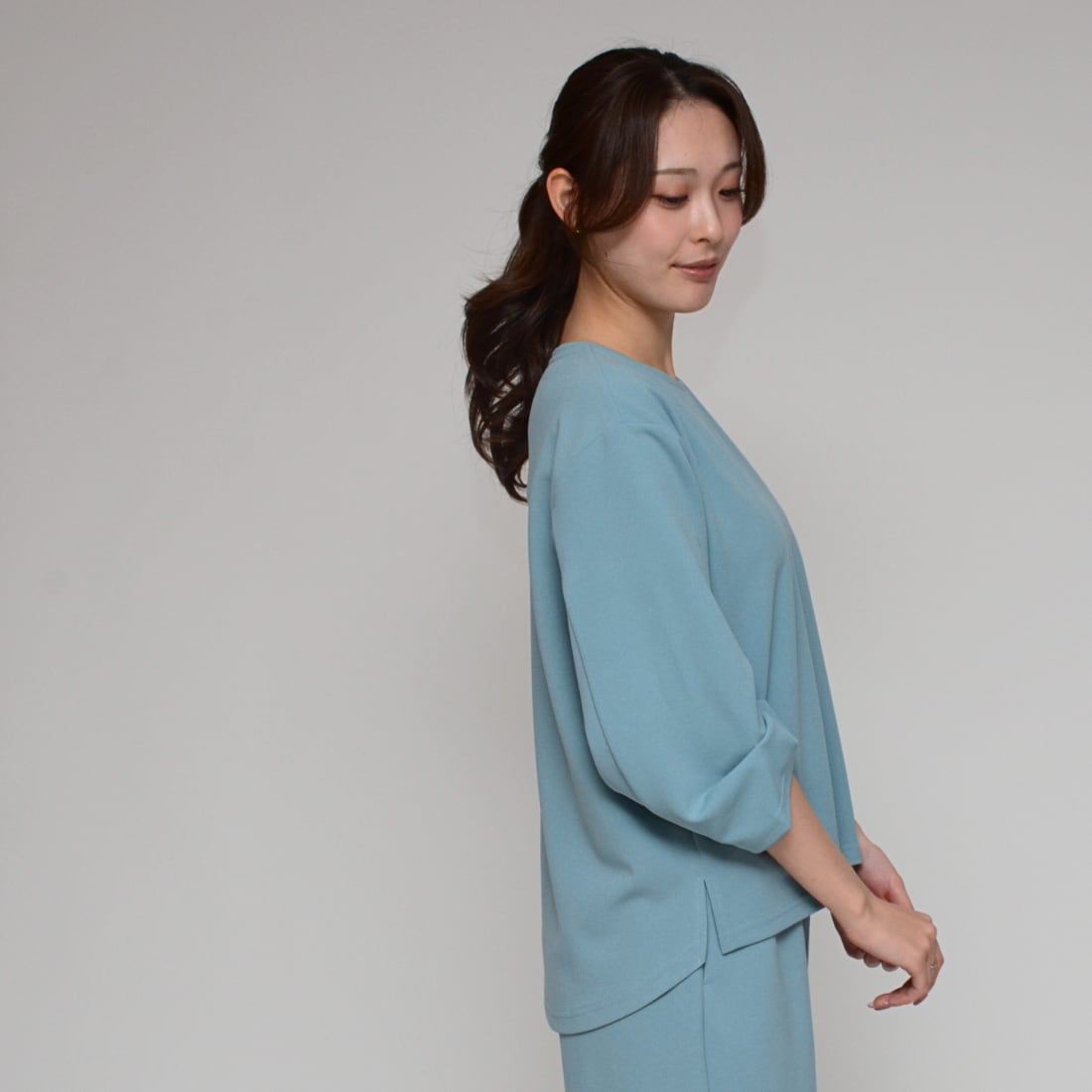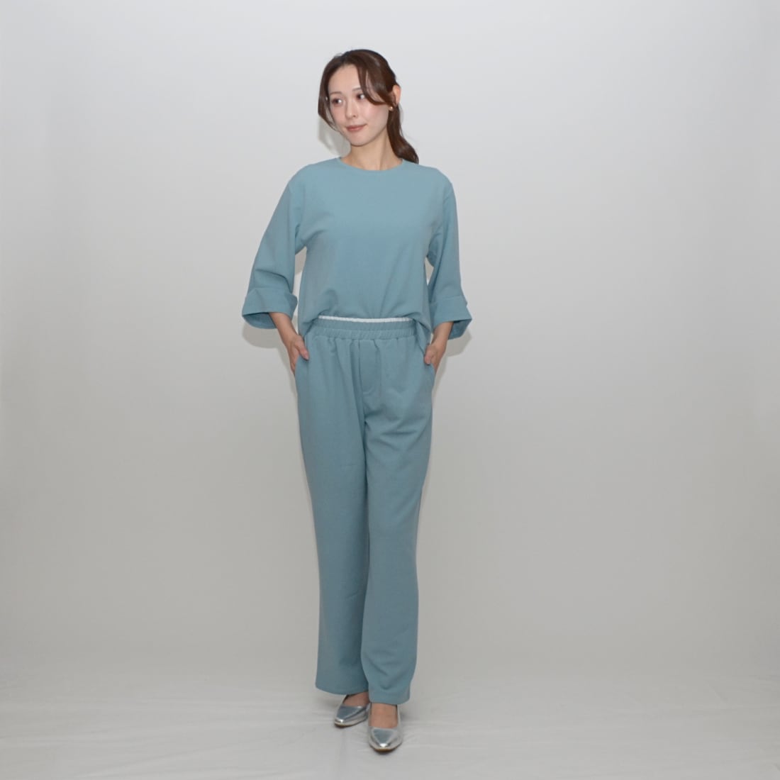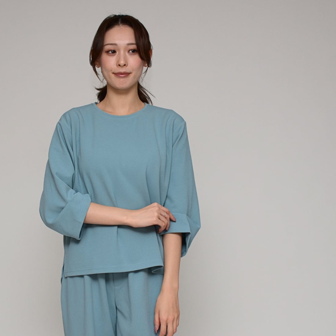 【セットアップでオケージョンにも◎】 梨地ストレッチ・スリーブタックブラウス ‐ LEQ-2610 ミント‐