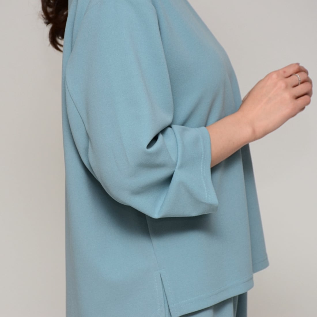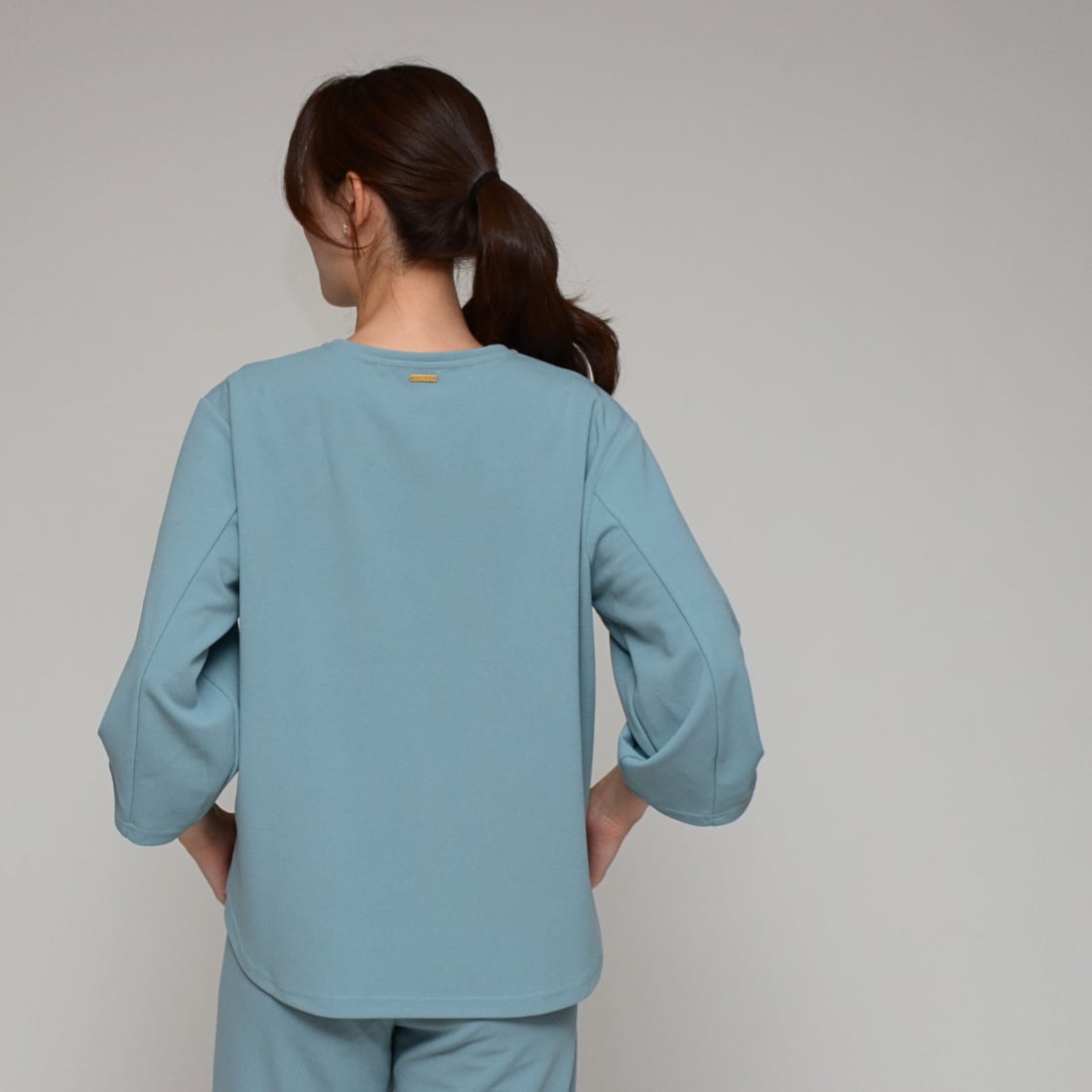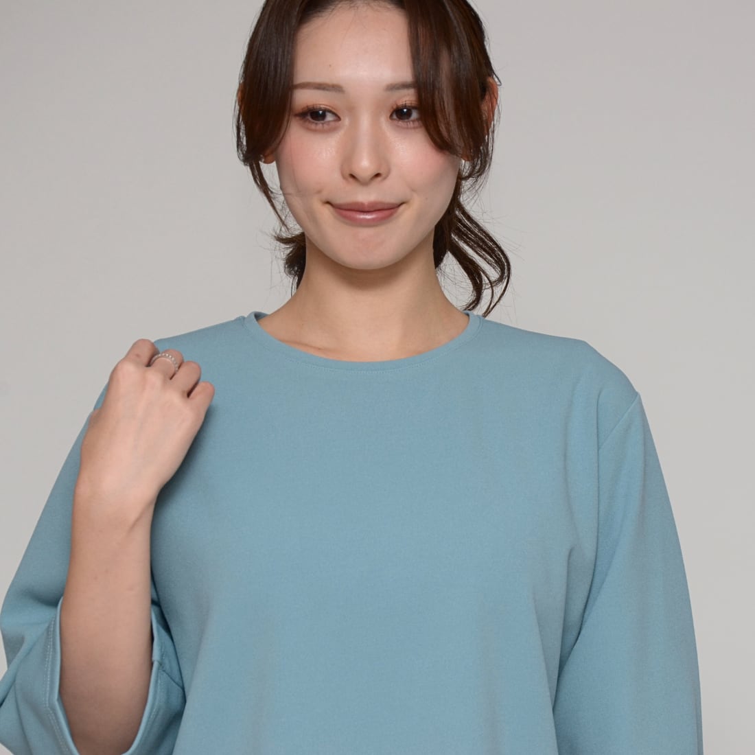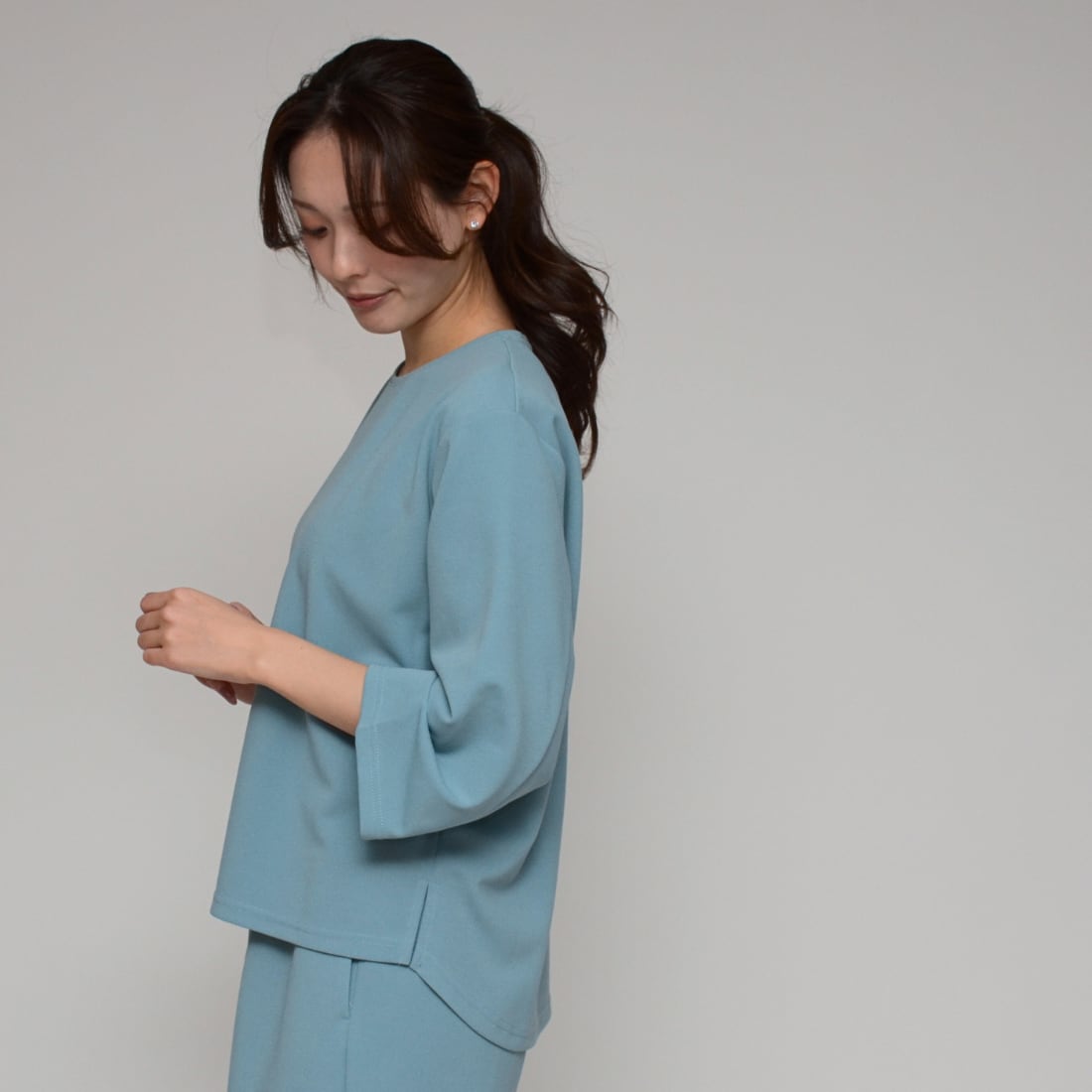 【セットアップでオケージョンにも◎】 梨地ストレッチ・スリーブタックブラウス ‐ LEQ-2610 ミント‐