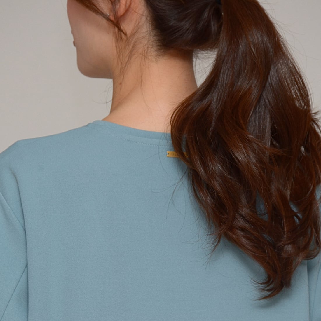 シンプルながら計算されたカッティング。ジュエリーやボトムスの合わせ次第で、ビジネスからフォーマルまで幅広く網羅。