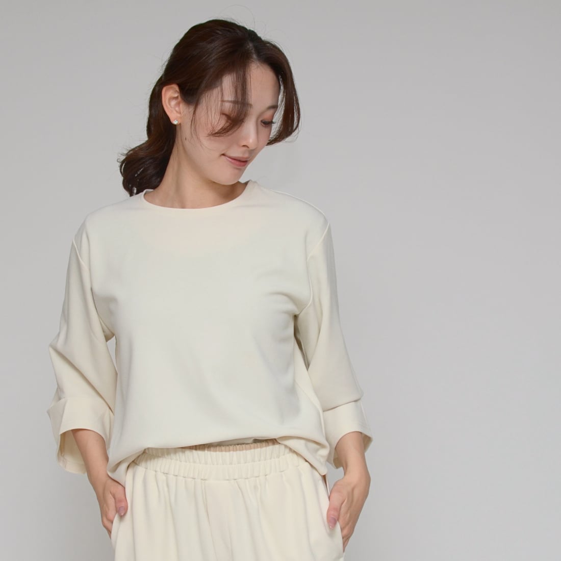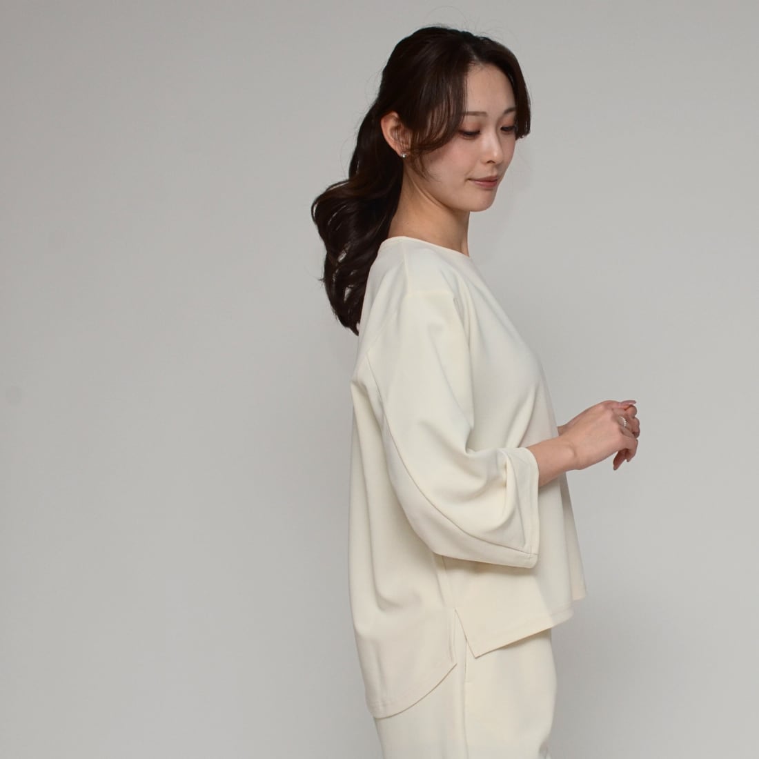 「とろける落ち感、気品漂う袖コンシャス。