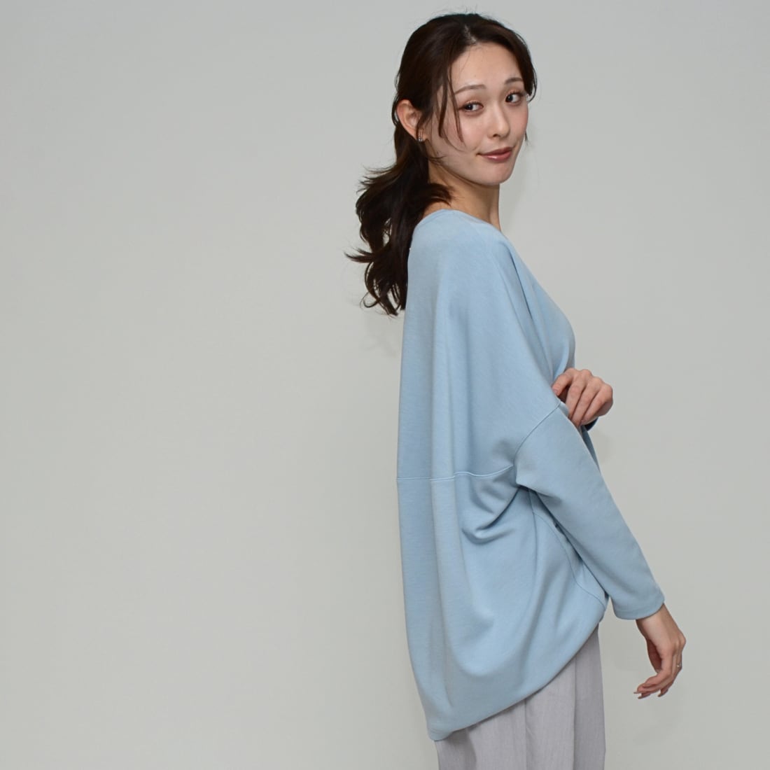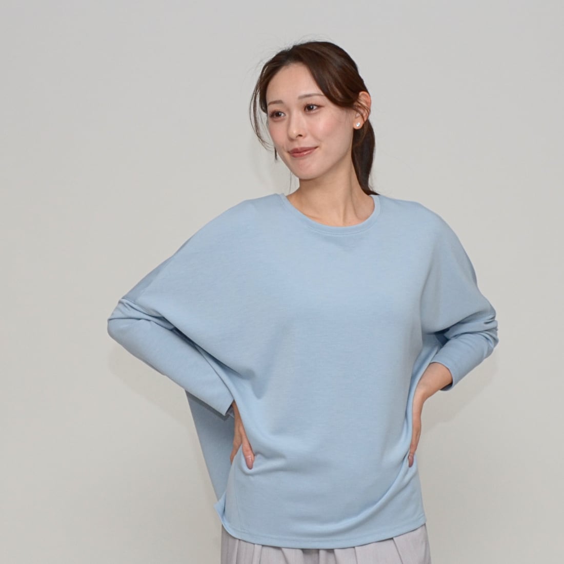 【2026春カラー登場】 ダブルフェイス・ドルマンコクーンプルオーバー ‐ LER-24109 サックス ‐