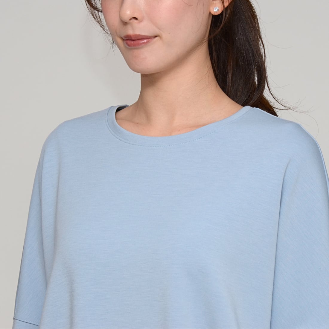 独特の弾力(もち感)と、流れるような落ち感(とろみ)を両立。シワになりにくく、デイリーからお出かけまで幅広く対応。