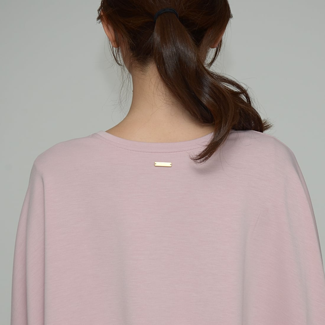 腕周りの可動域を広く取ったドルマンスリーブから、裾のコクーンラインへと繋がる立体設計。体型カバーとモードな雰囲気を両立。