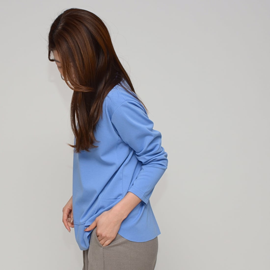 【2026春カラー登場】 バックスリット・ラウンドヘム・カットソー ‐ LER-25101 サックス ‐