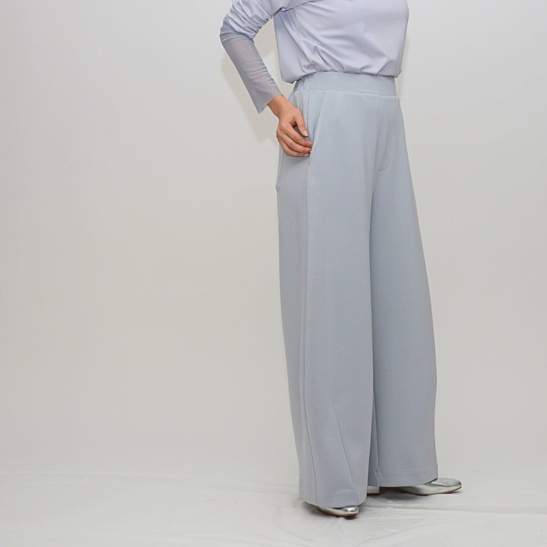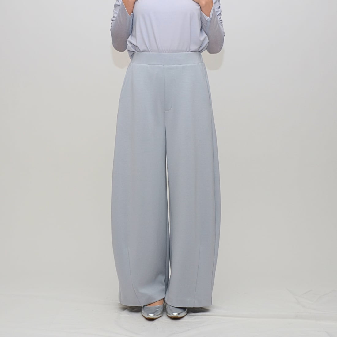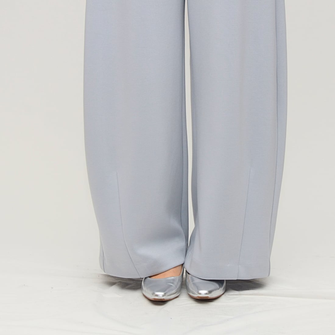 【トレンド感プラス】マシュマロダブルフェイス・バレルレッグパンツ ‐ LEQ-2623 ダルサックス ‐