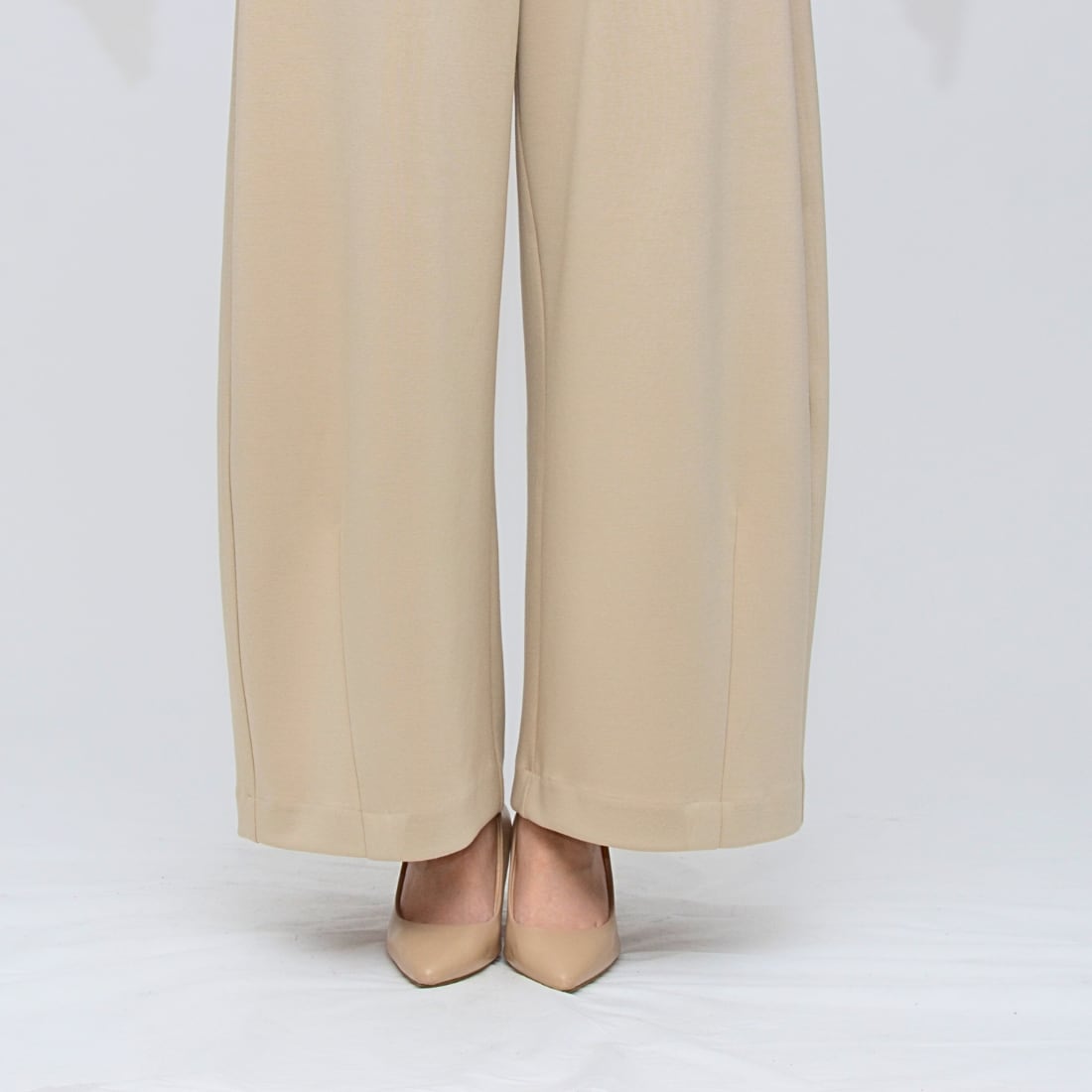 【トレンド感プラス】マシュマロダブルフェイス・バレルレッグパンツ ‐ LEQ-2623 グレージュ ‐