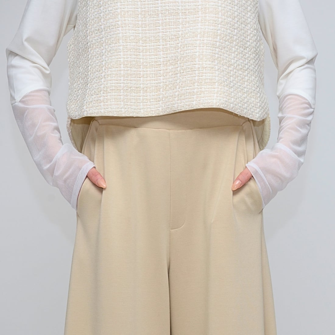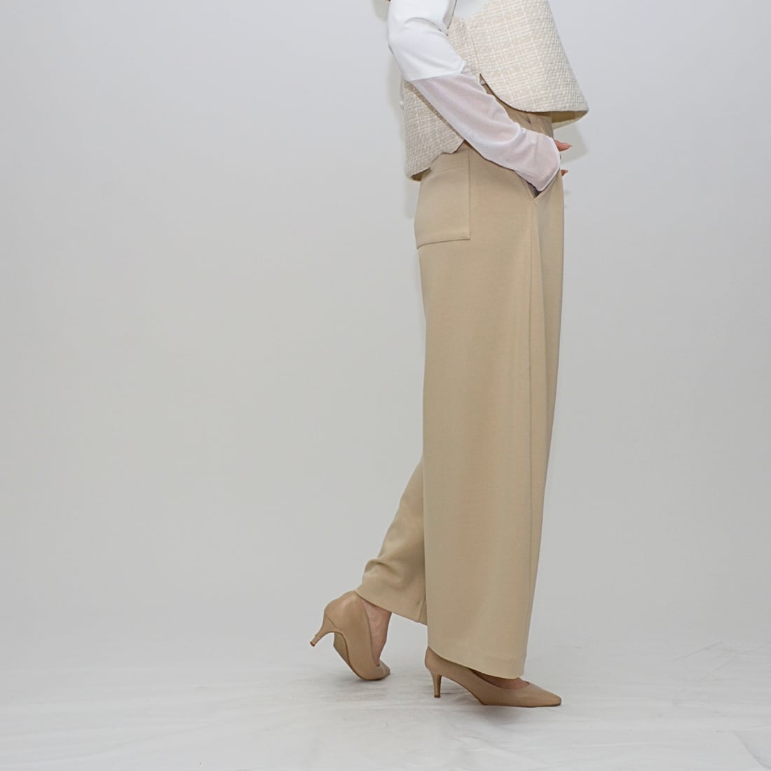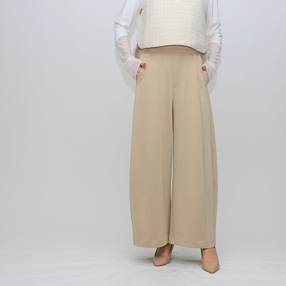 ワイドパンツよりも立体的で、テーパードパンツよりもリラクシング。脚のラインを完全にカバーしつつ、旬のボリューム感を楽しめる設計。