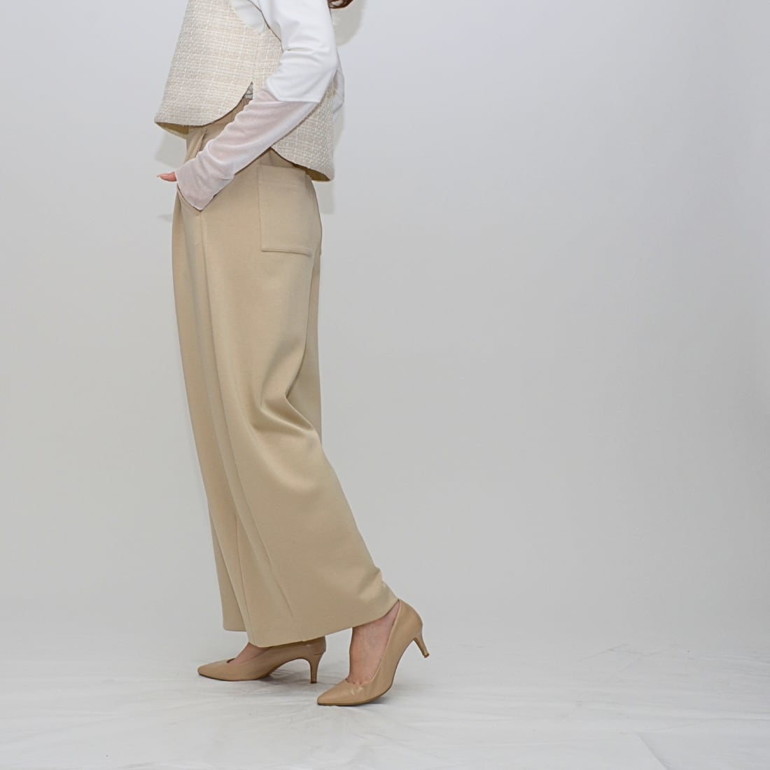 「もちもち」とした弾力と「とろとろ」したドレープ性を兼ね備えたハイグレード素材。膝が出にくく、美しいバレルラインを長時間キープ。