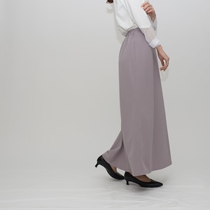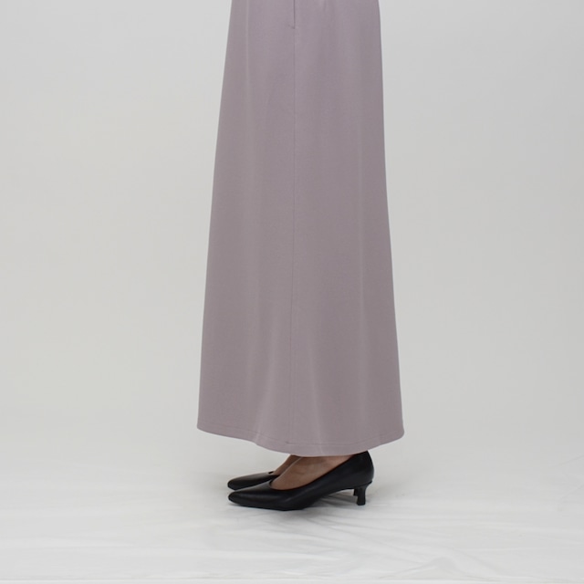 広がりすぎない絶妙なフレアー分量。落ち感のある素材と相まって、横に広がらず縦に流れるような「着痩せシルエット」を構築。