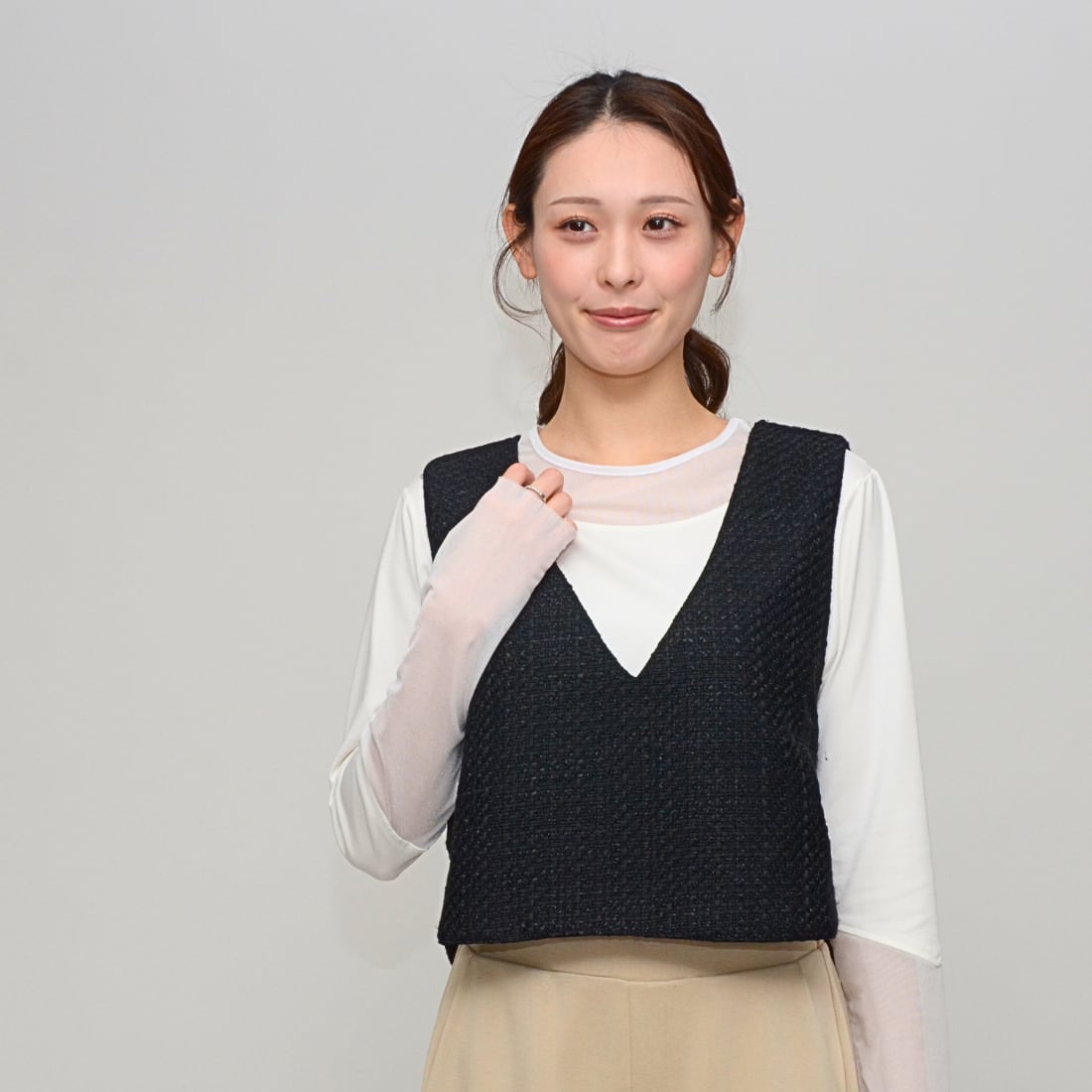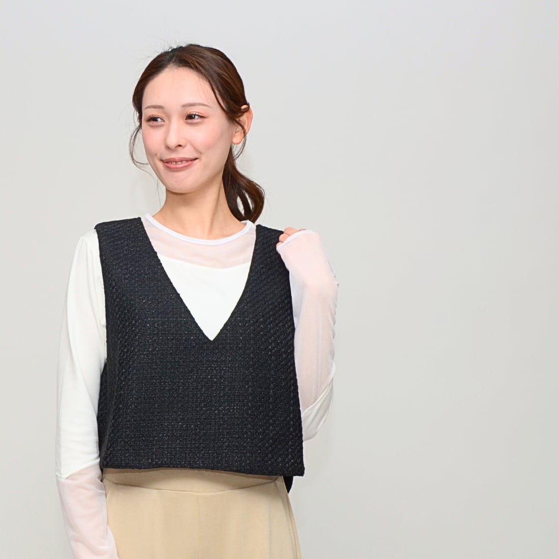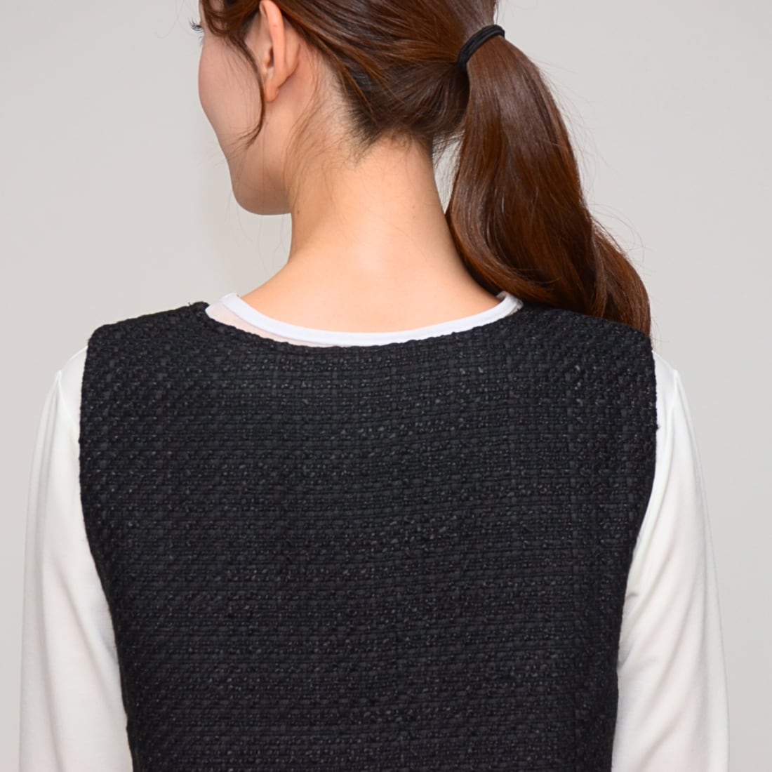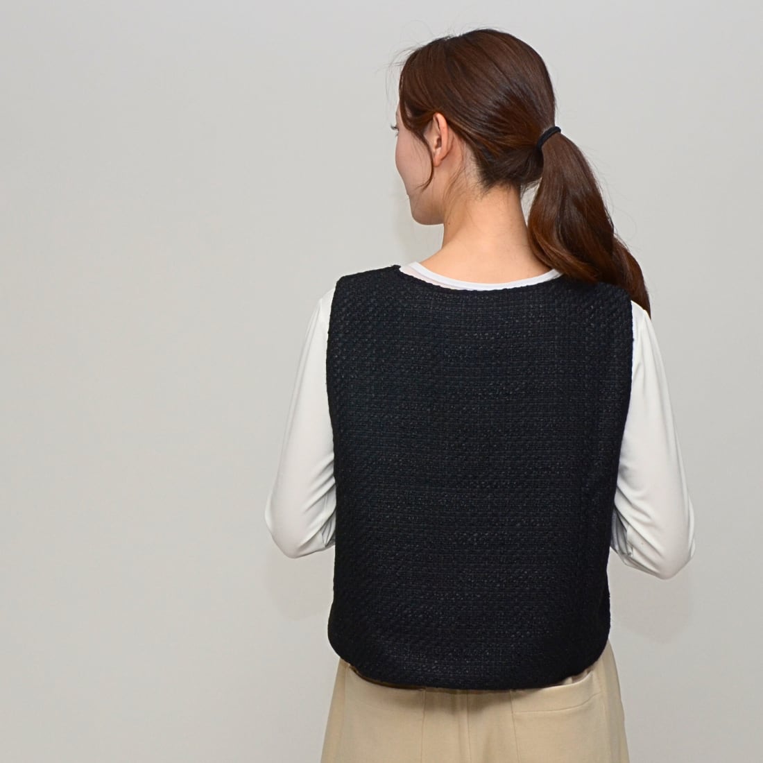【トレンド感プラス】スプリングツイード・ラウンドヘムベスト ‐ LER-2441D ブラック ‐