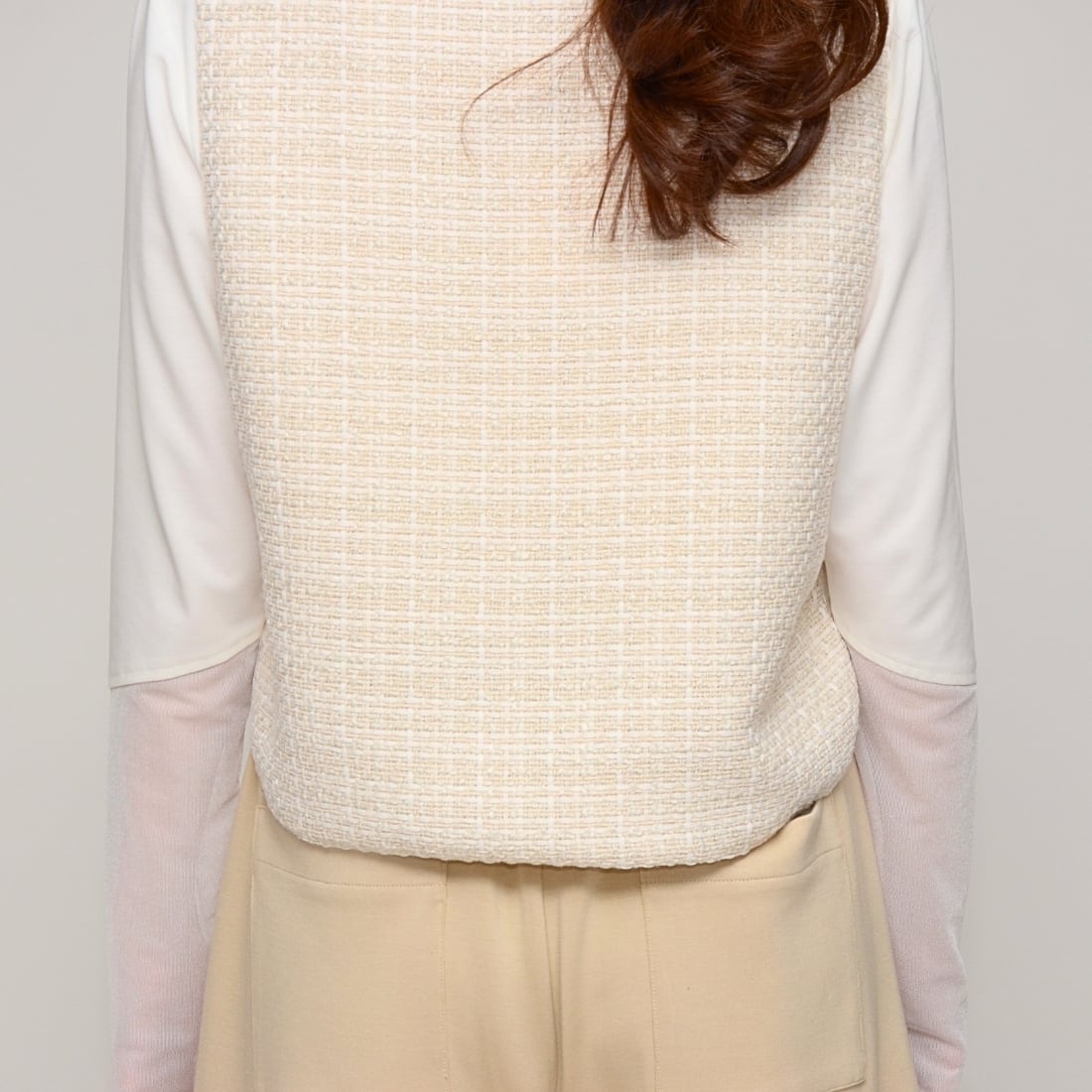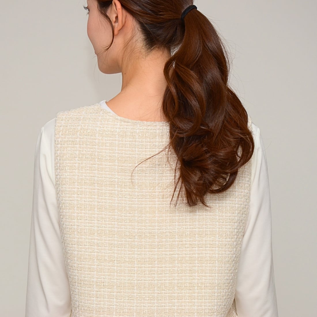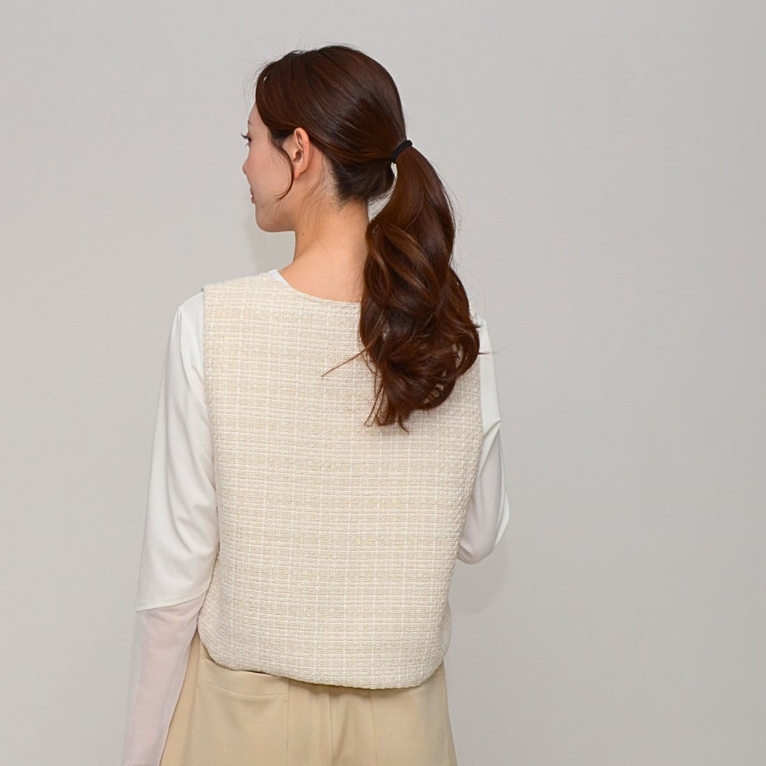 【トレンド感プラス】スプリングツイード・ラウンドヘムベスト ‐ LER-2441D ベージュ ‐