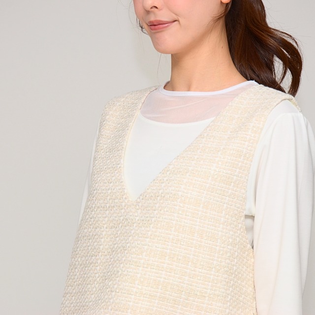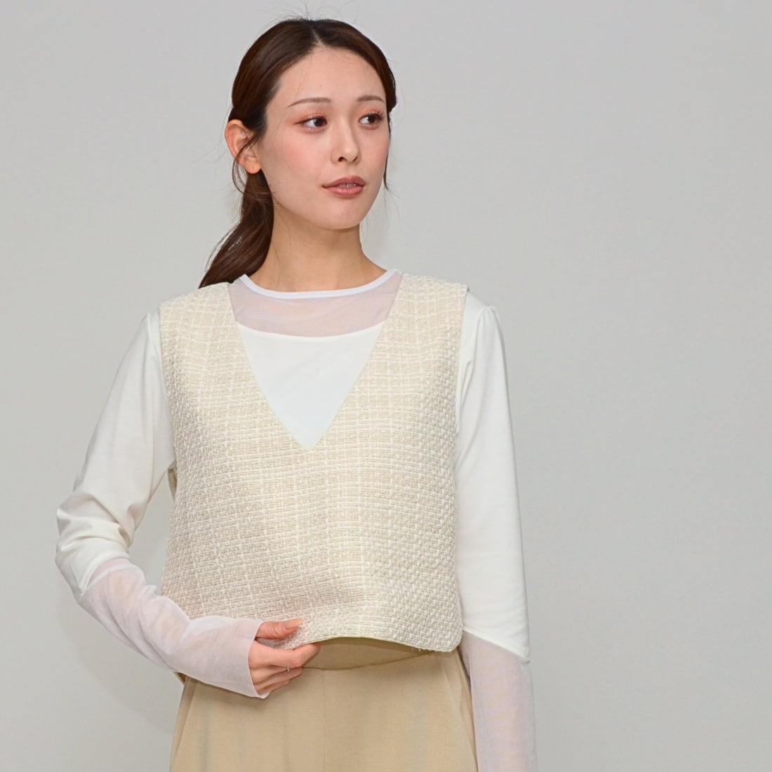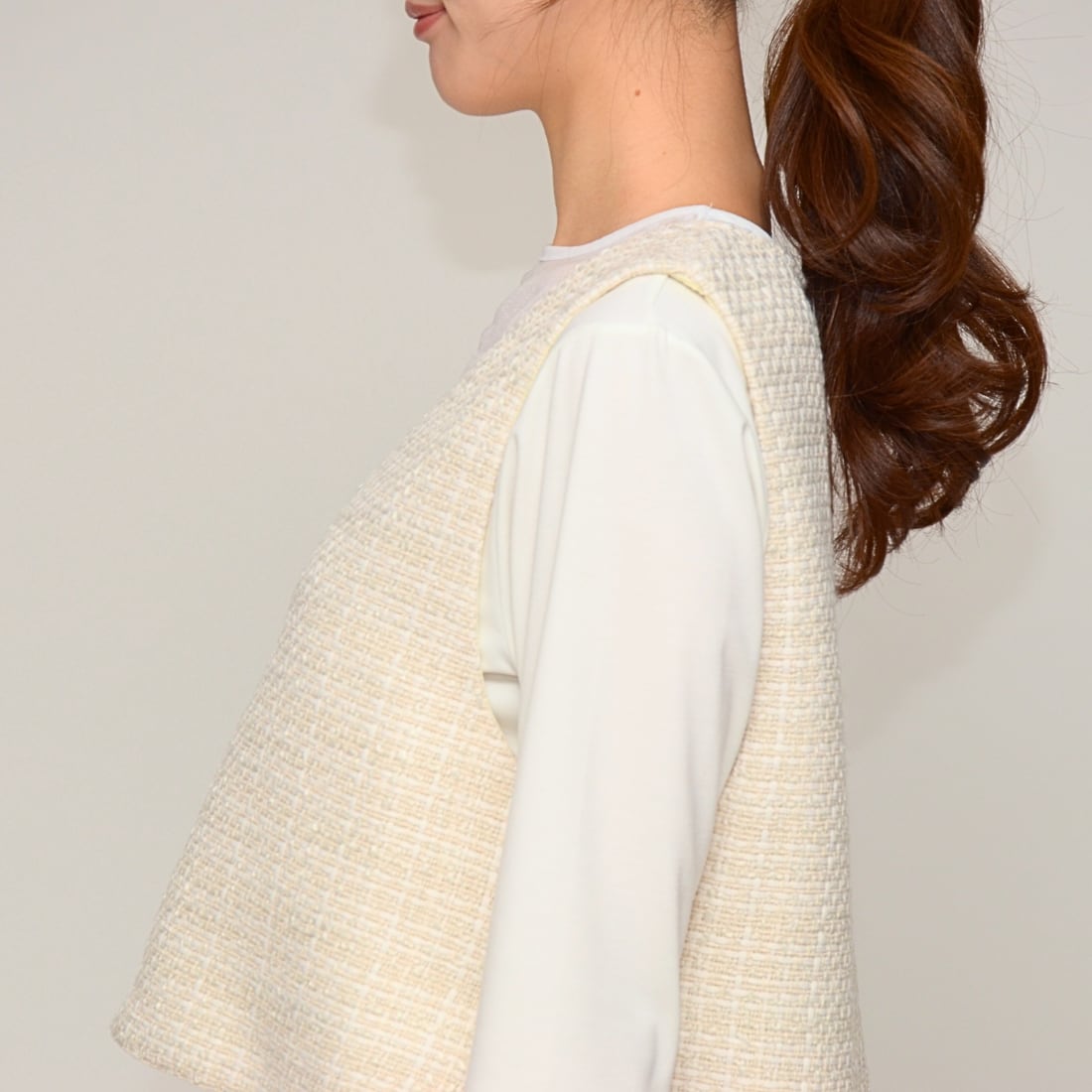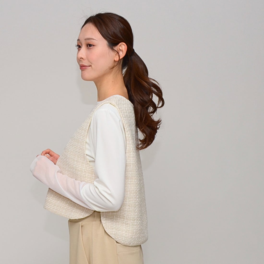 【トレンド感プラス】スプリングツイード・ラウンドヘムベスト ‐ LER-2441D ベージュ ‐